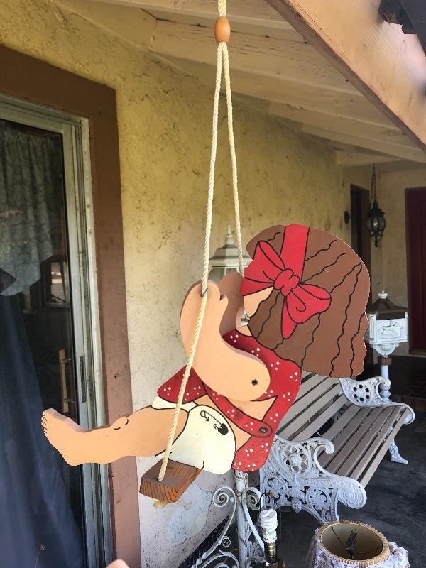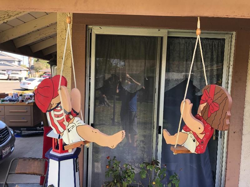 Garden Yard Art Ornaments Decor - Kids Swinging on swings Boy & Girl Wood cut-out shapes hand-painted