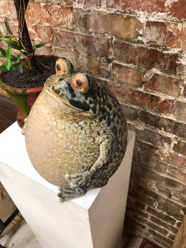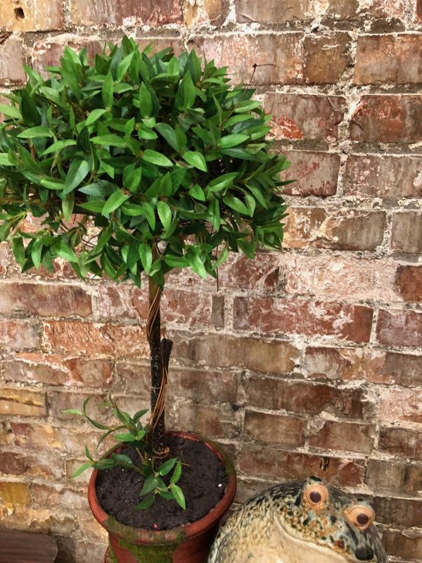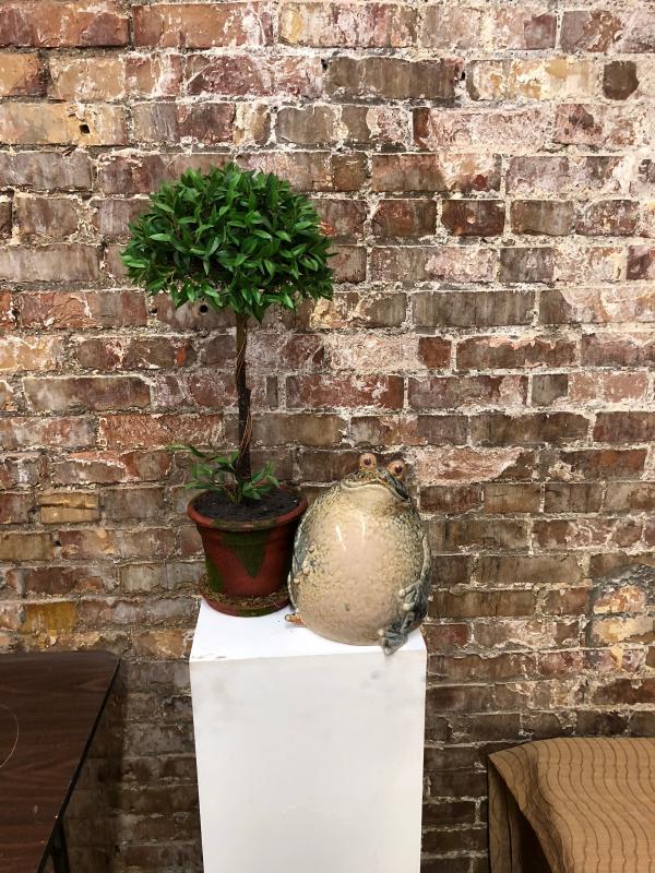 Here is an 11" whimsical ceramic frog along with a 24" high topiary...for yard or patio...