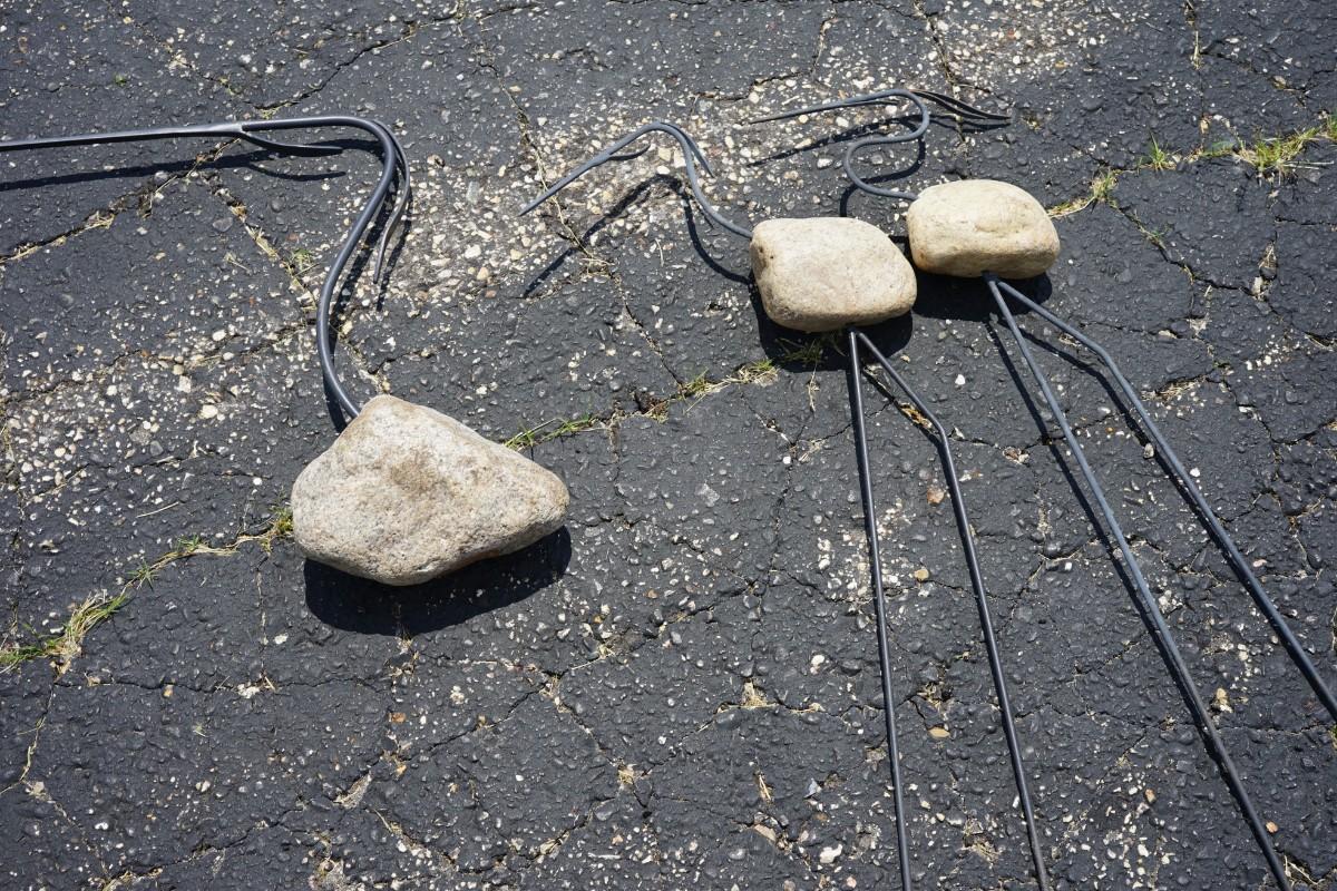 YARD ART CRANES/ ROD AND ROCK FORMS 4 total 1 as is