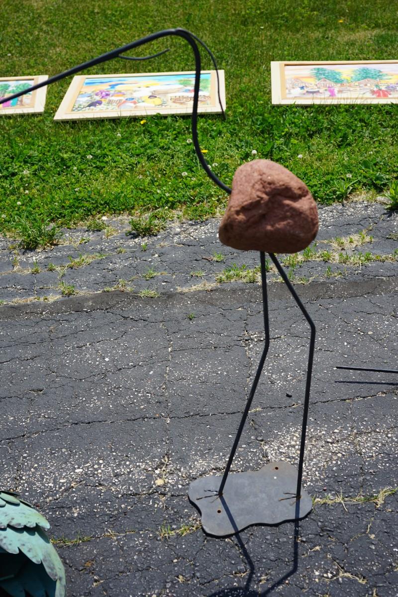 YARD ART CRANES/ ROD AND ROCK FORMS 4 total  1 as is