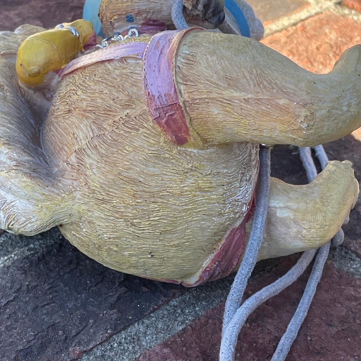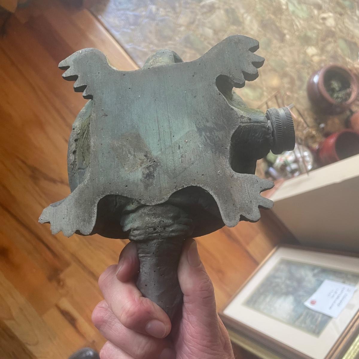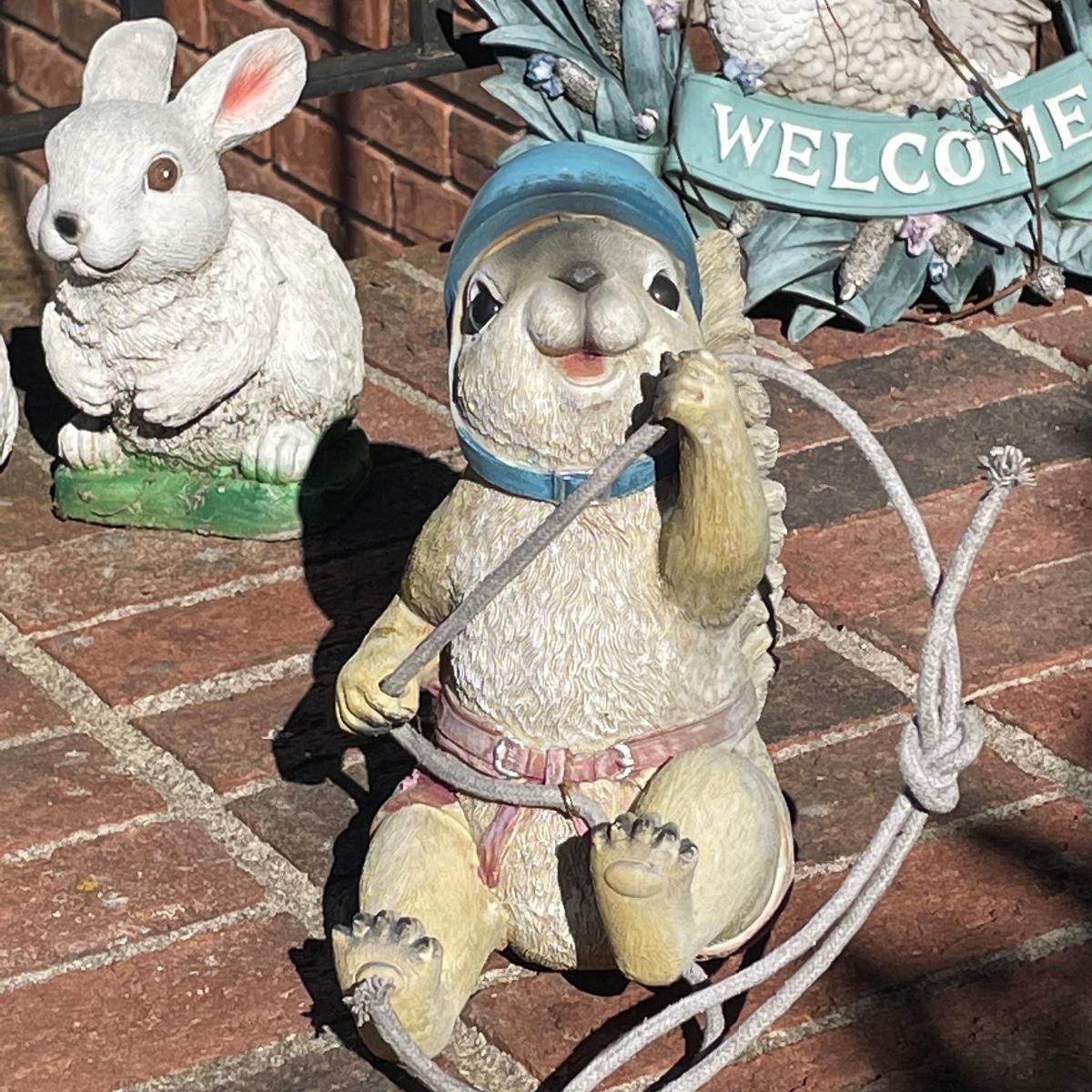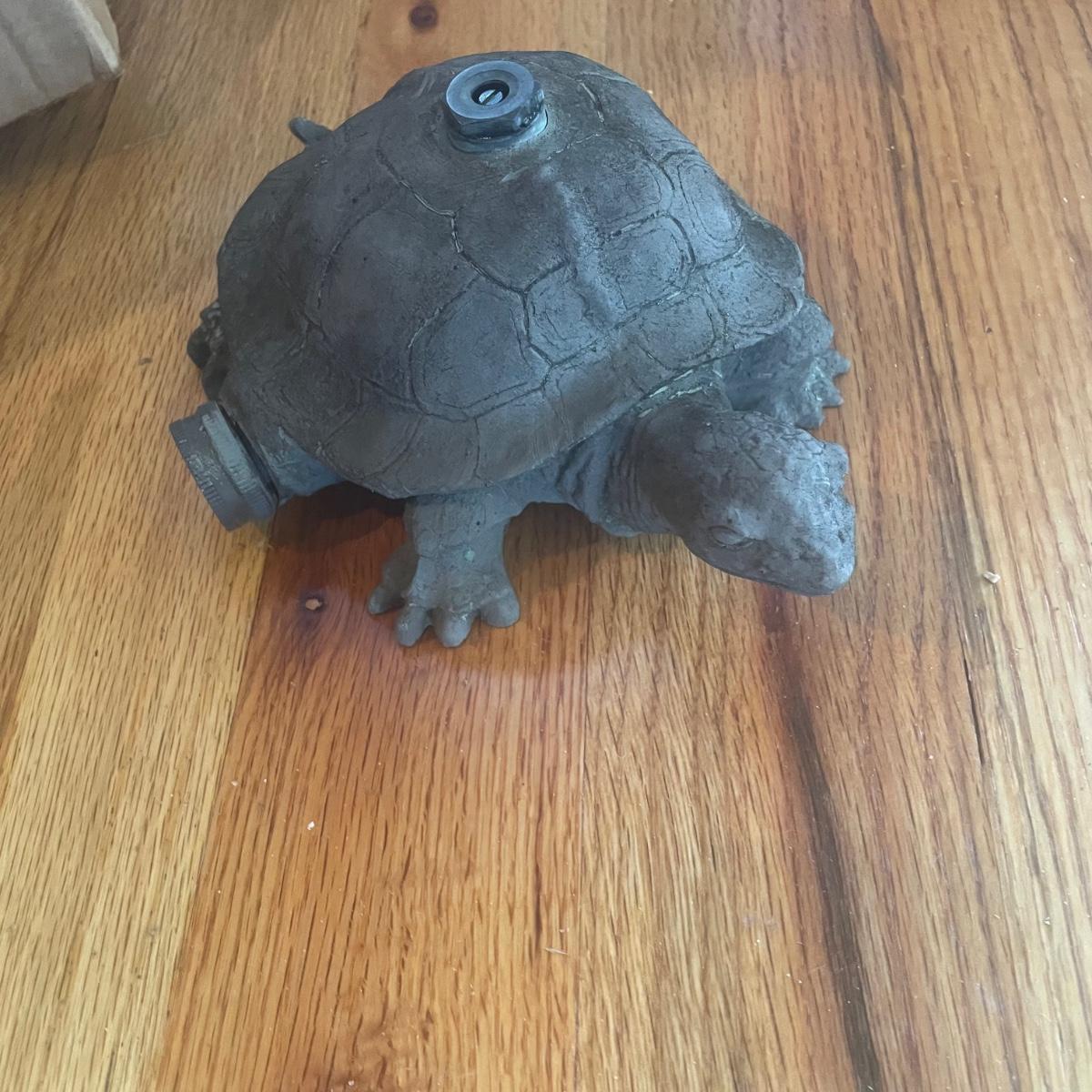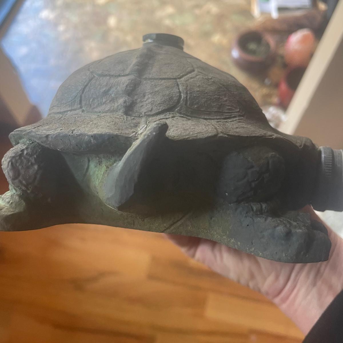Six adorable yard art critters here to make you smile. Most items appear to be a resin type material except for the two bunnies which are heavier from a cement like material. Canada goose welcome sign does not currently have a way to hang it. A heavy resin tortoise sprinkler was added to this lot later, it measures 7” x 6” x 5”.