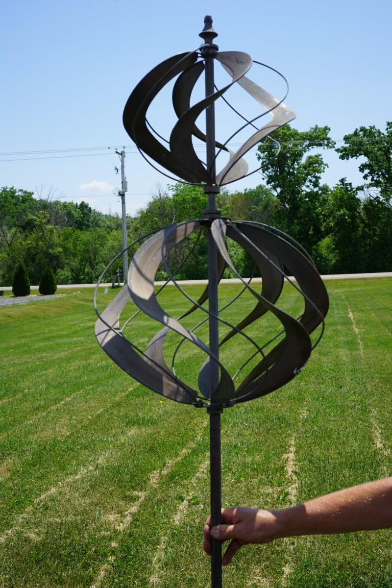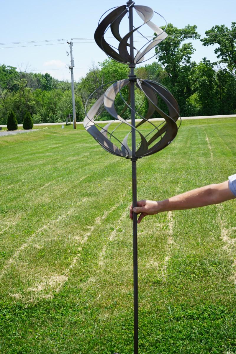 YARD ART METAL SCULPTURE . WIND DRIVEN MOVEMENT.