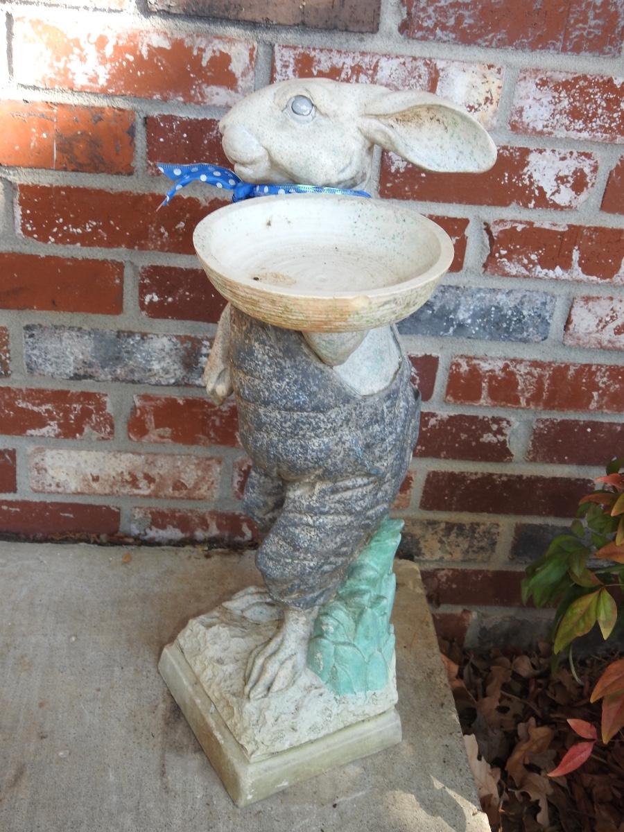 Beautiful yard Art rabbit waiter measures 22” tall made of a resin in great used condition