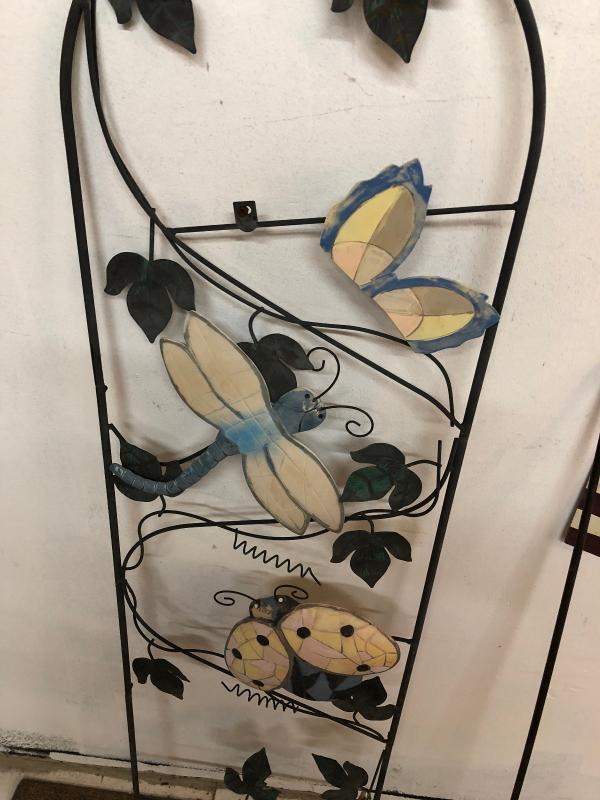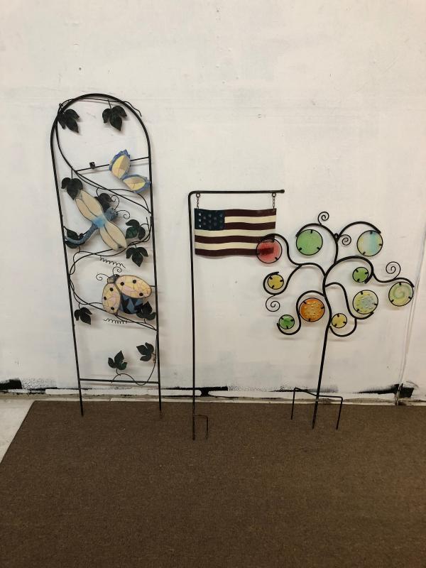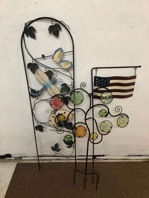 Yard Art Wrought Iron Trellis & Flag lot