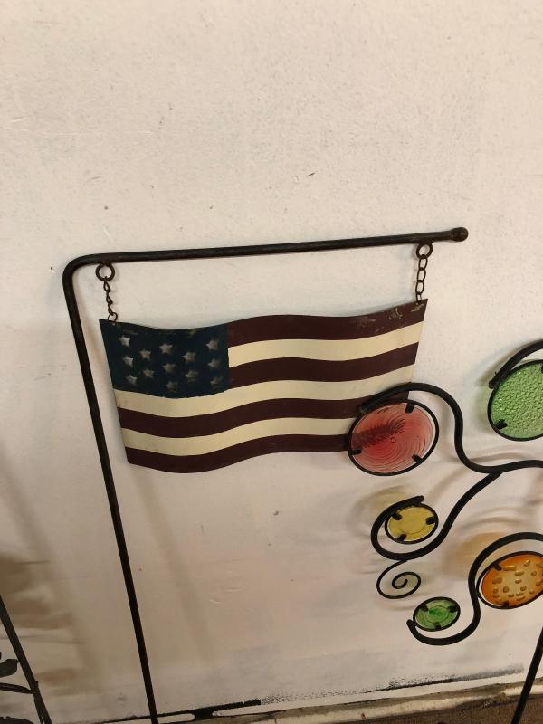 Here are a few pieces of metal yard art...Trellis..US flag...Decorative and whimsical...Approx 48" 38" 32" in height...