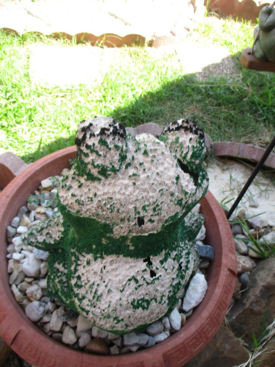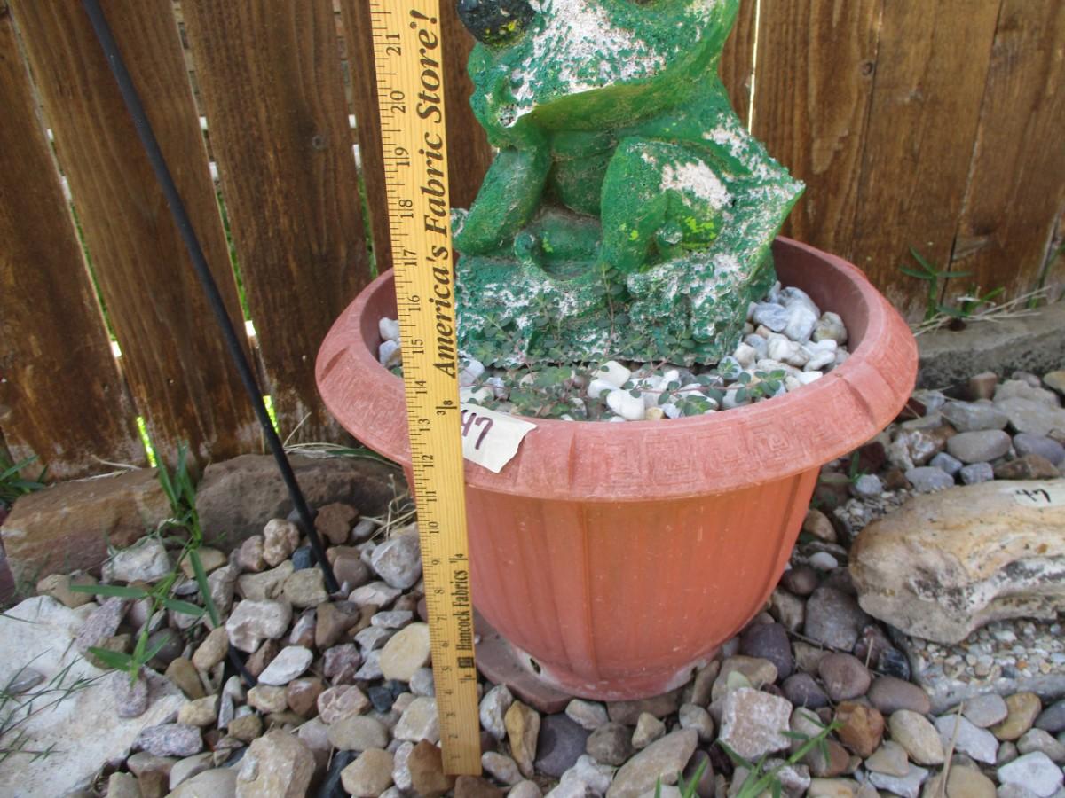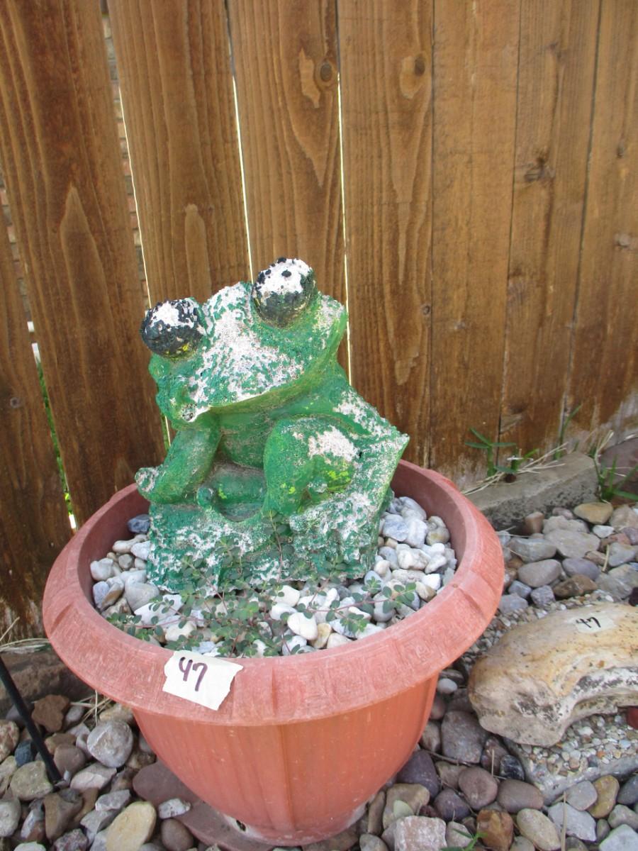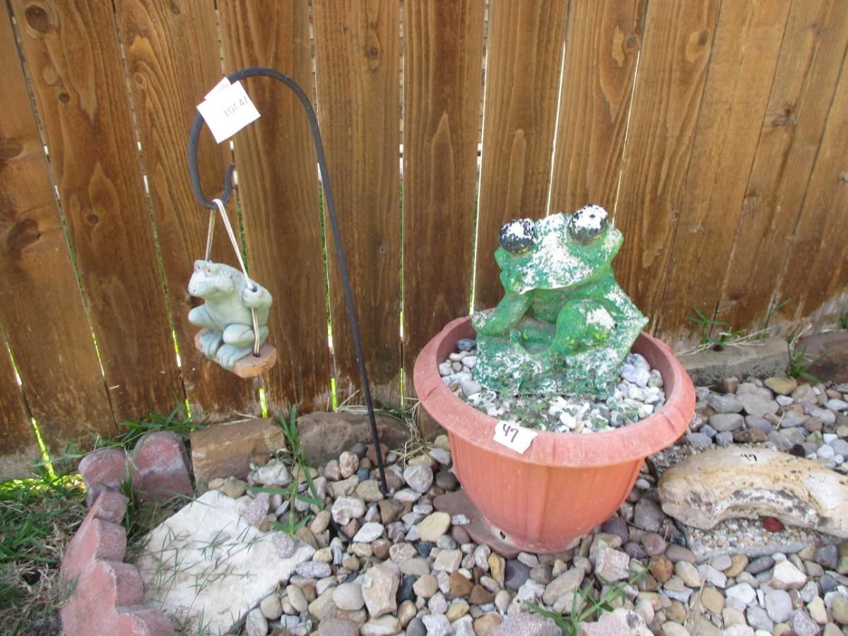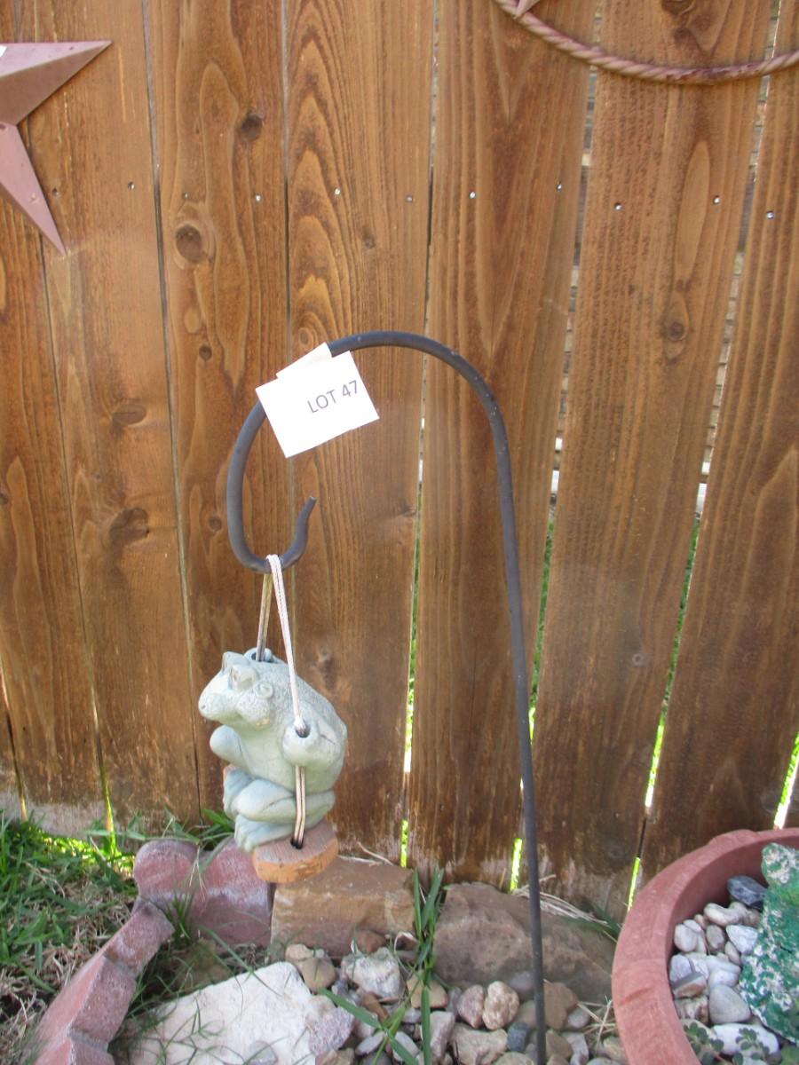 Planter w/frog. Shepherds hook 2 stones. 5pcs