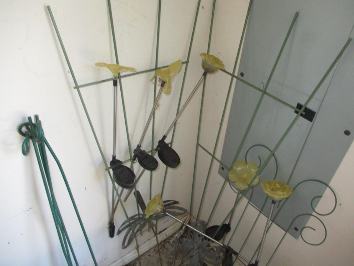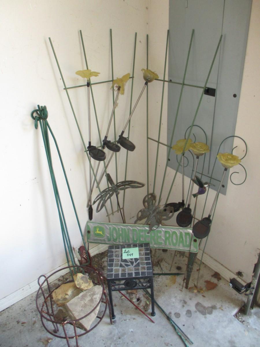 Aluminum John Deere sign, Solar Lights, Vine Trellis, Flagstands