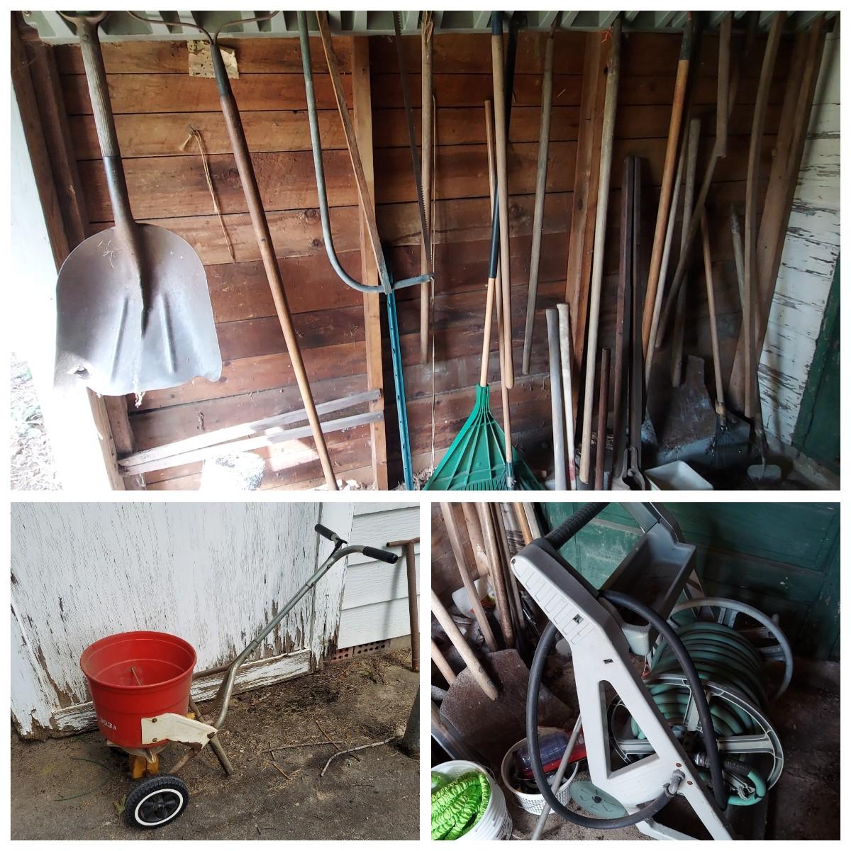Several yard tools including hand tools like rakes and hoes with a seed spreader, hose caddy and more. Please see photos for details. Local Pickup Only. Winning bidder must load all pieces of the lot. Nothing is boxed. This lot is located in the garage with ground level access to the driveway and yard.