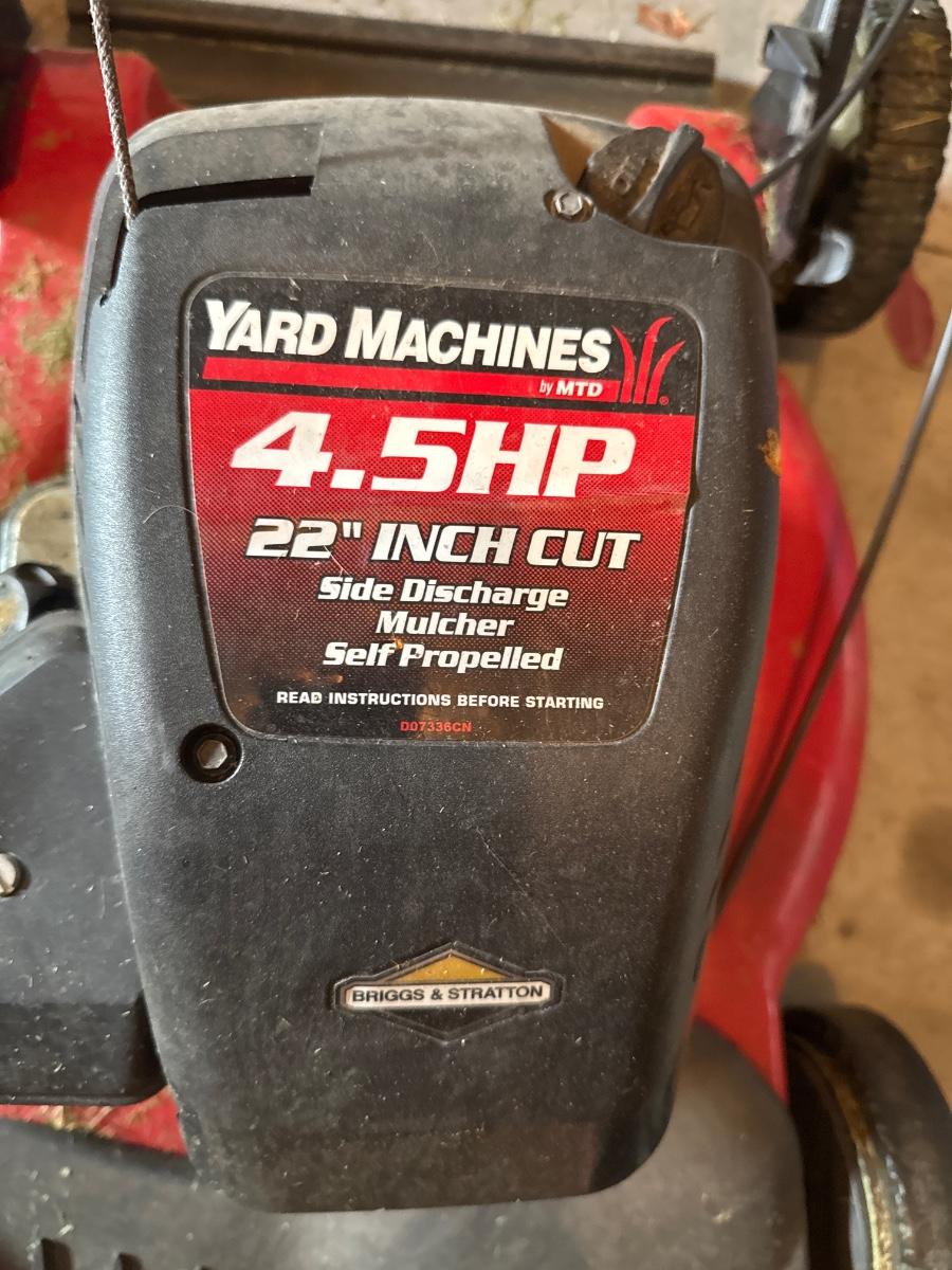Yard machines 4.5 hp 22 inch cut side discharge mulcher self-propelled lawnmower