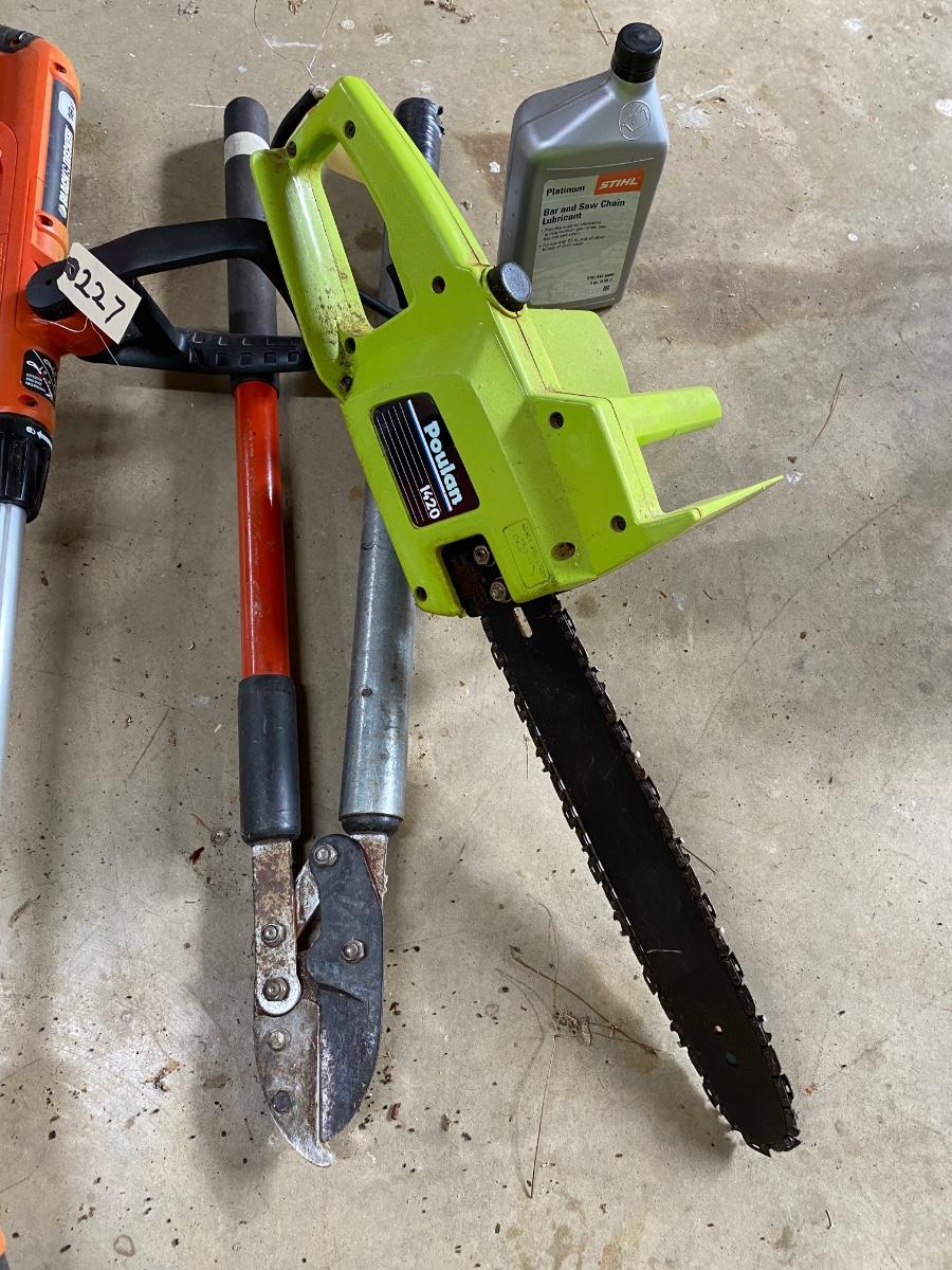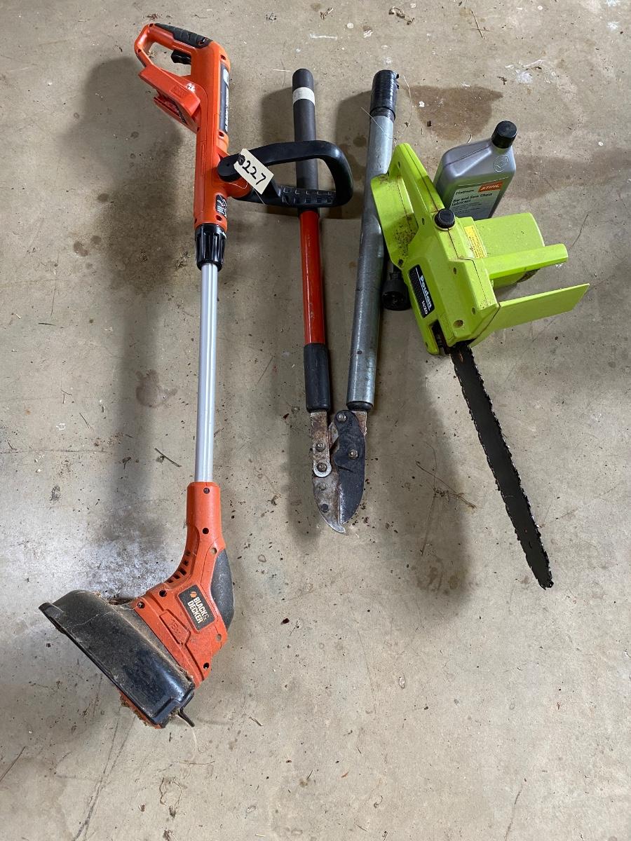 Electric Chain Saw, Loppers, Electric Weed Eater As Pictured