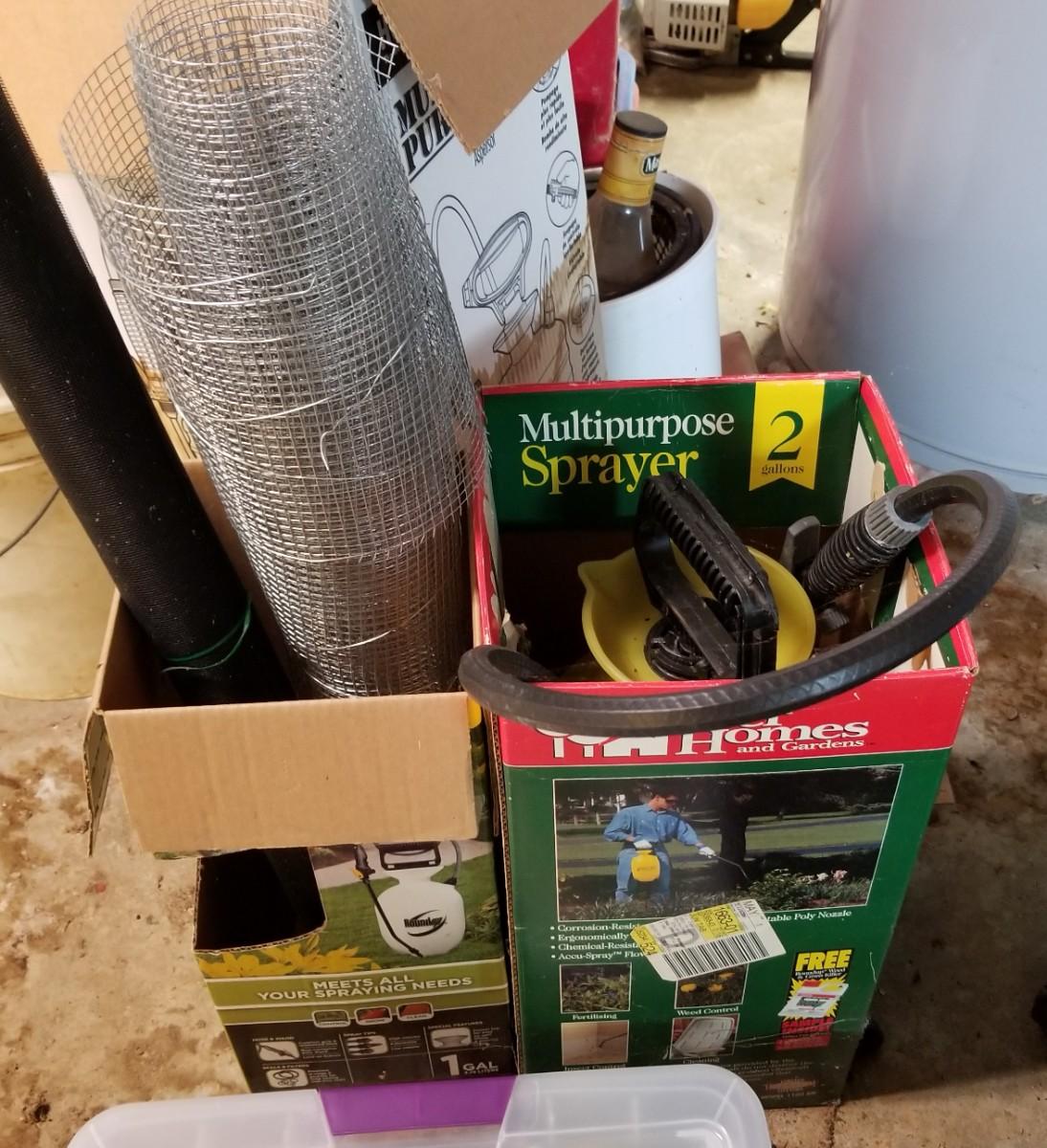 Black & Decker and Echo tools, sprayer and swiffer.