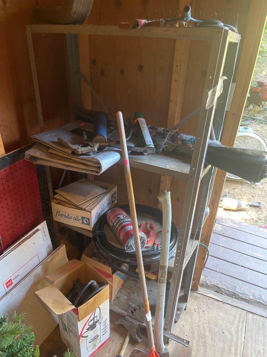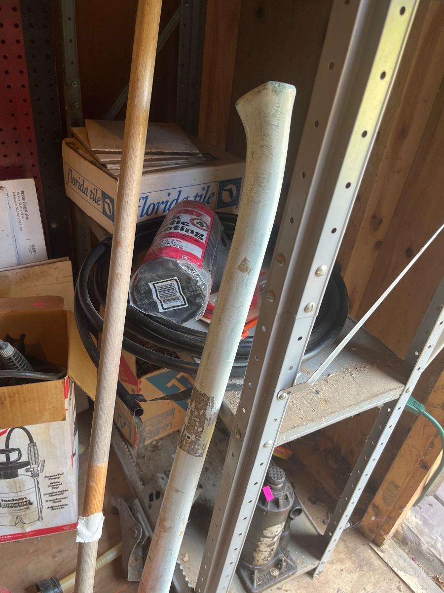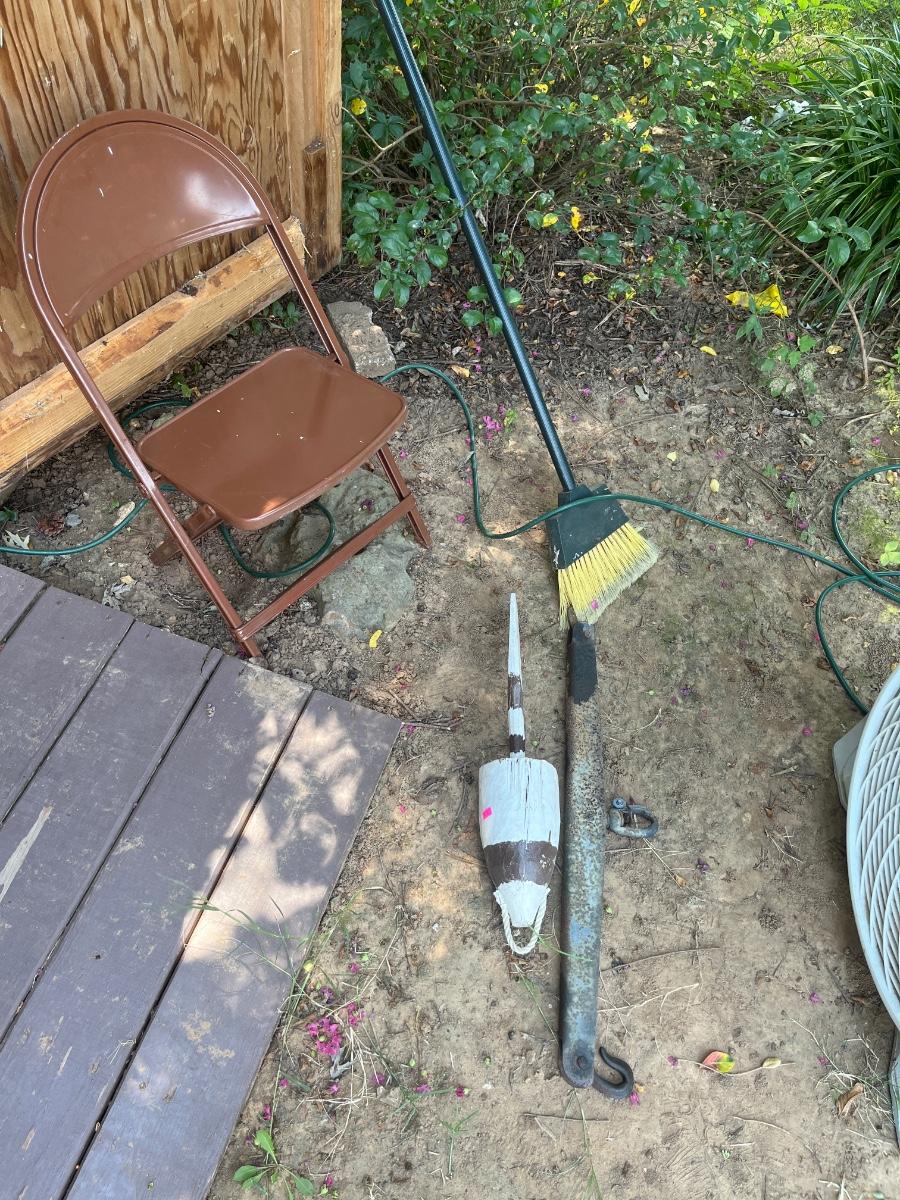 Yard tools, fan, ladder, tiller, chair, hydraulic jack