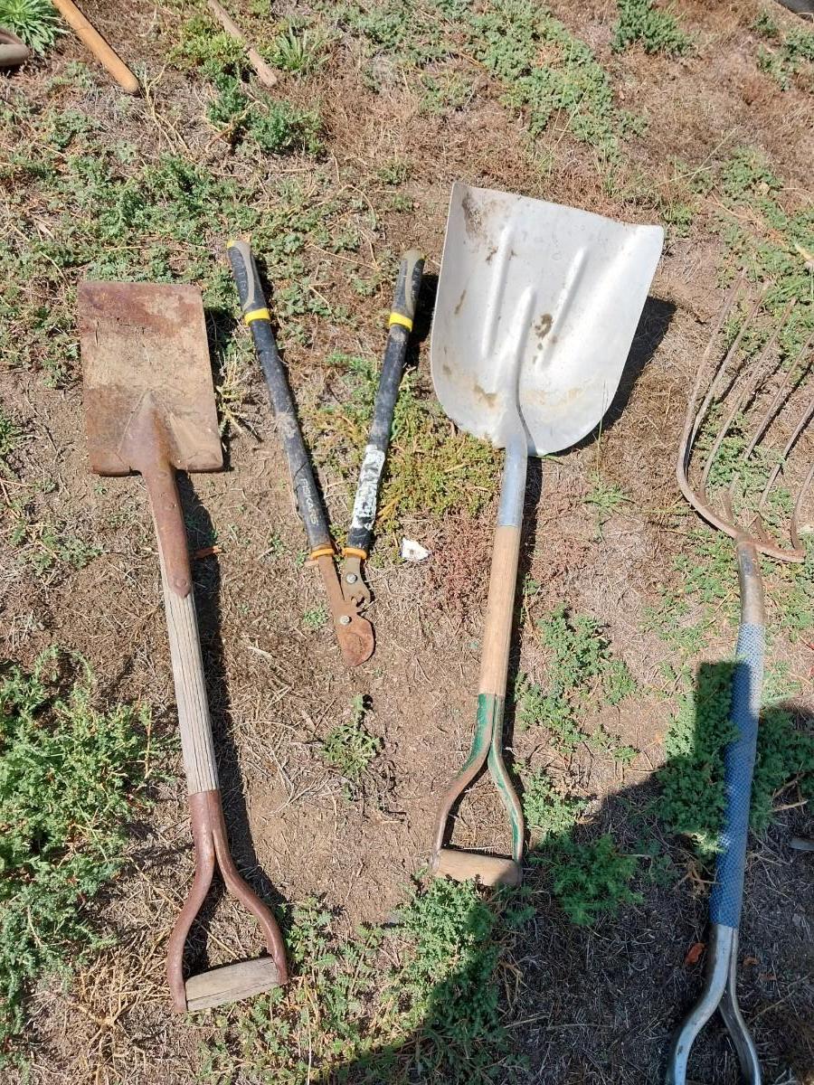 YARD TOOLS, PICK AXE, AXE, GARDEN CART