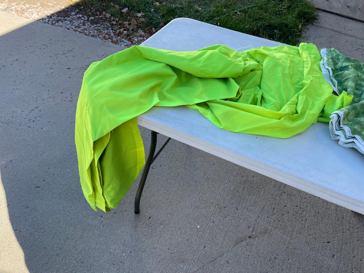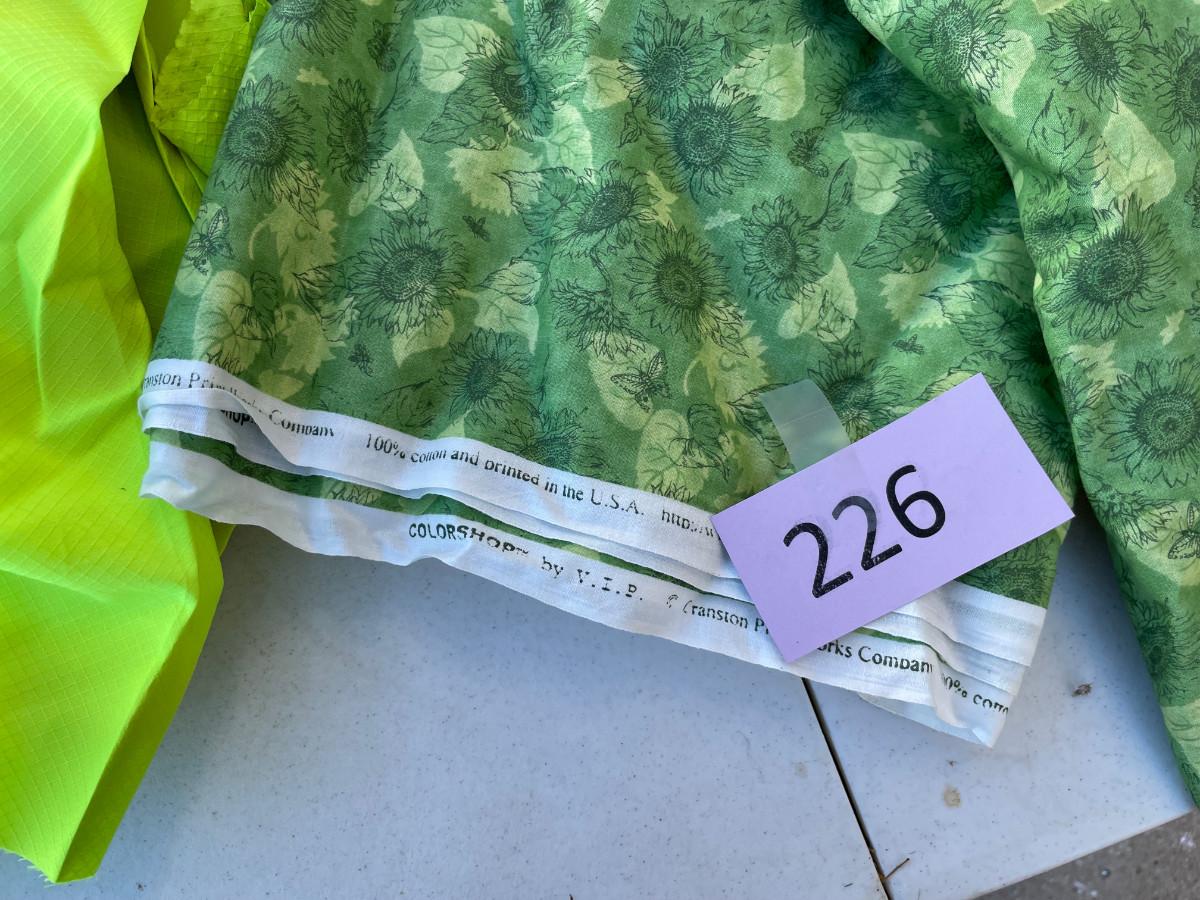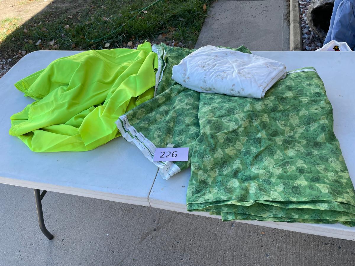 At least 1/2 bolt of the two fabrics. The white is a sheet.