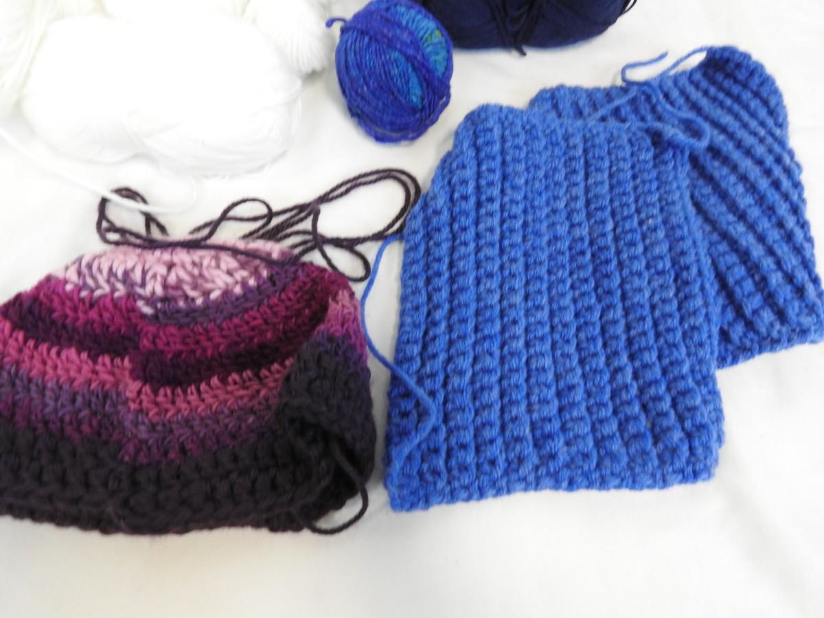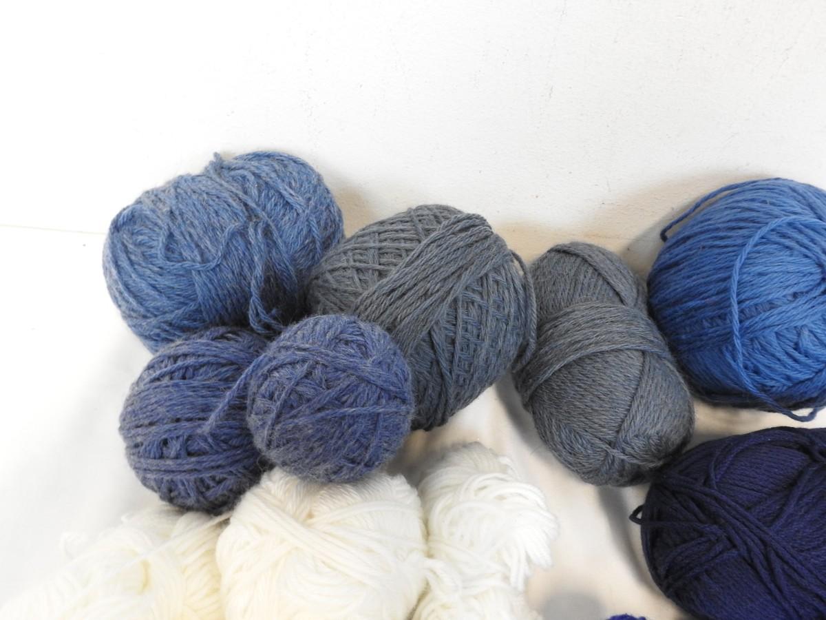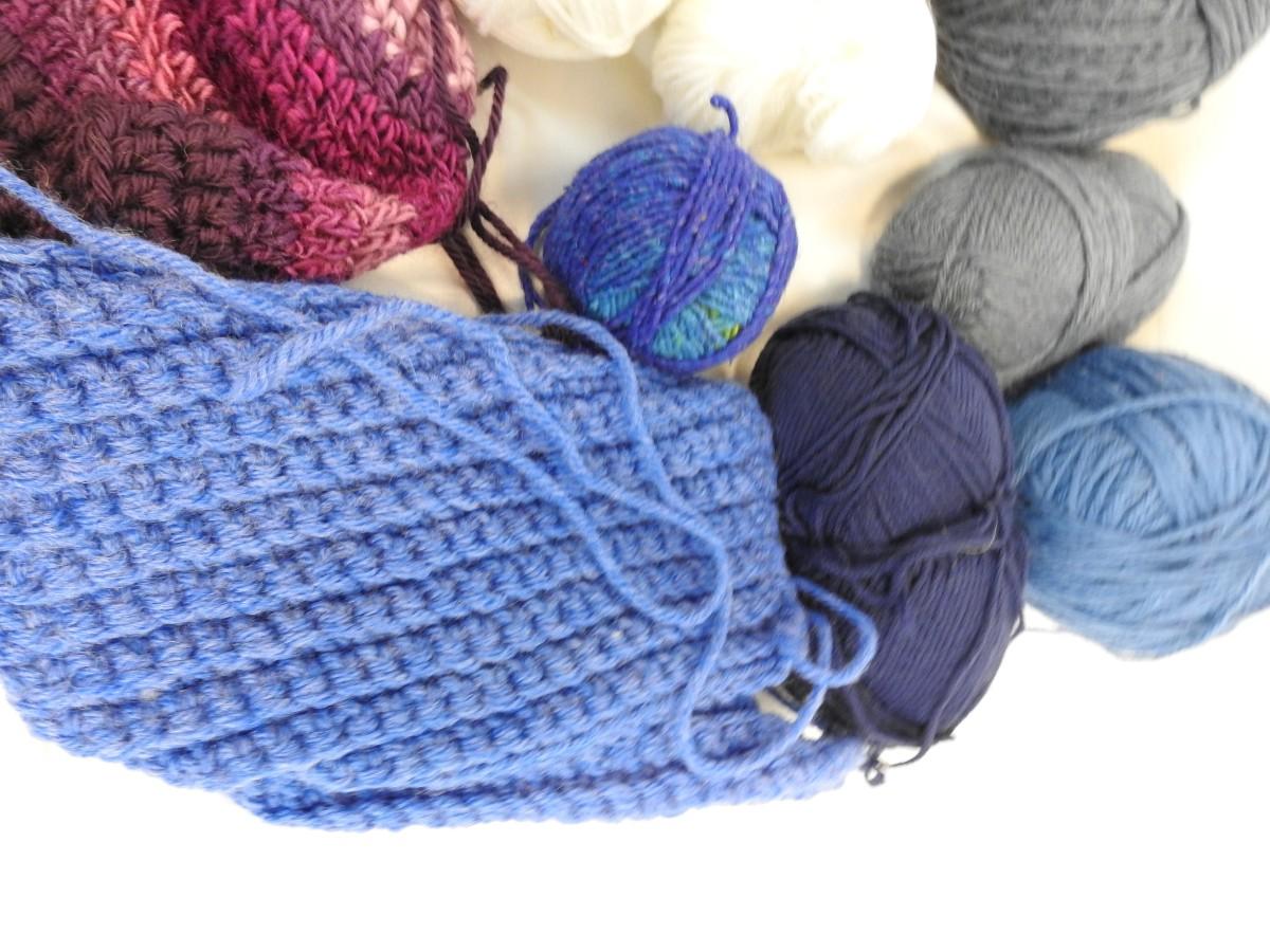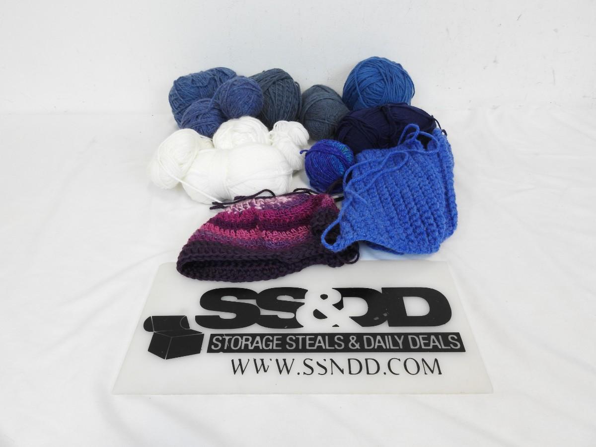 Yarn: Various Shades of Blue, White, Includes Unfinished Projects