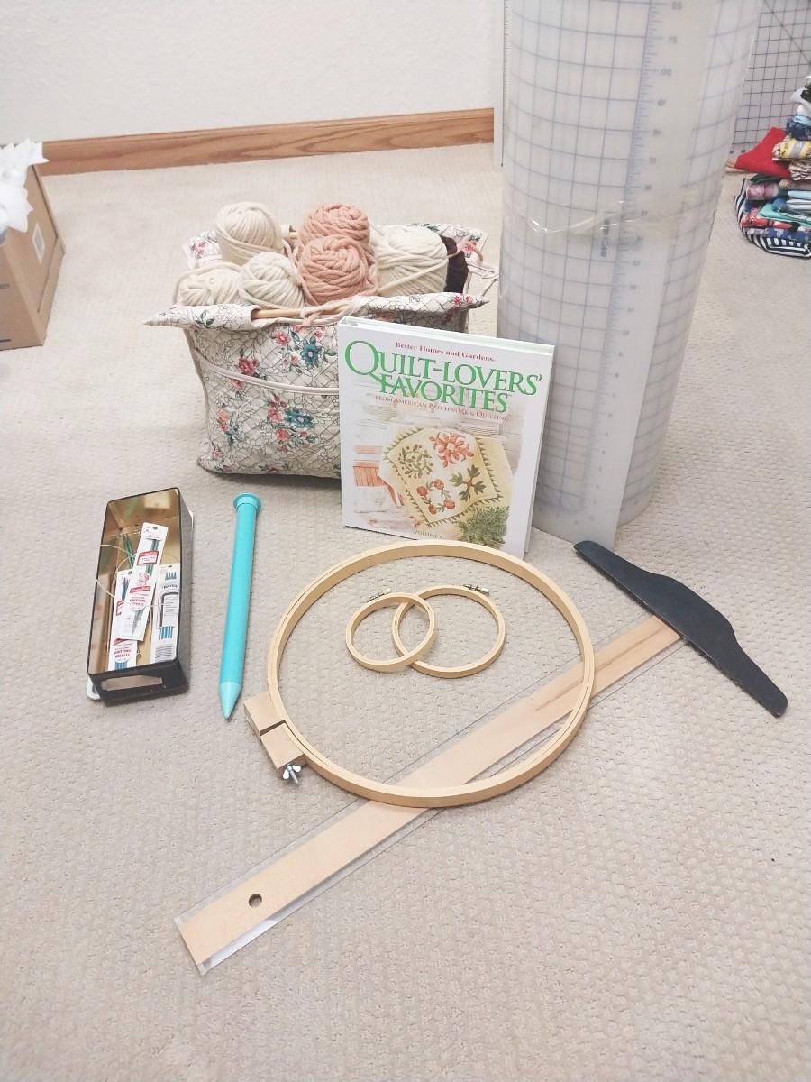 YARN-MAT-HOOPS-KNITTING NEEDLES AND MORE