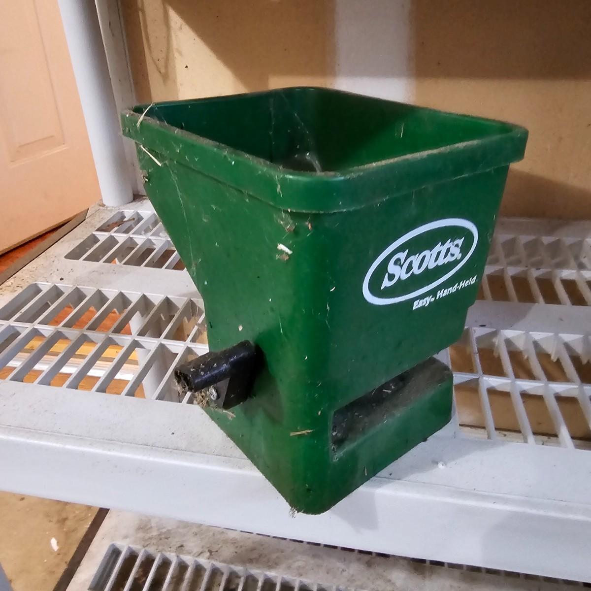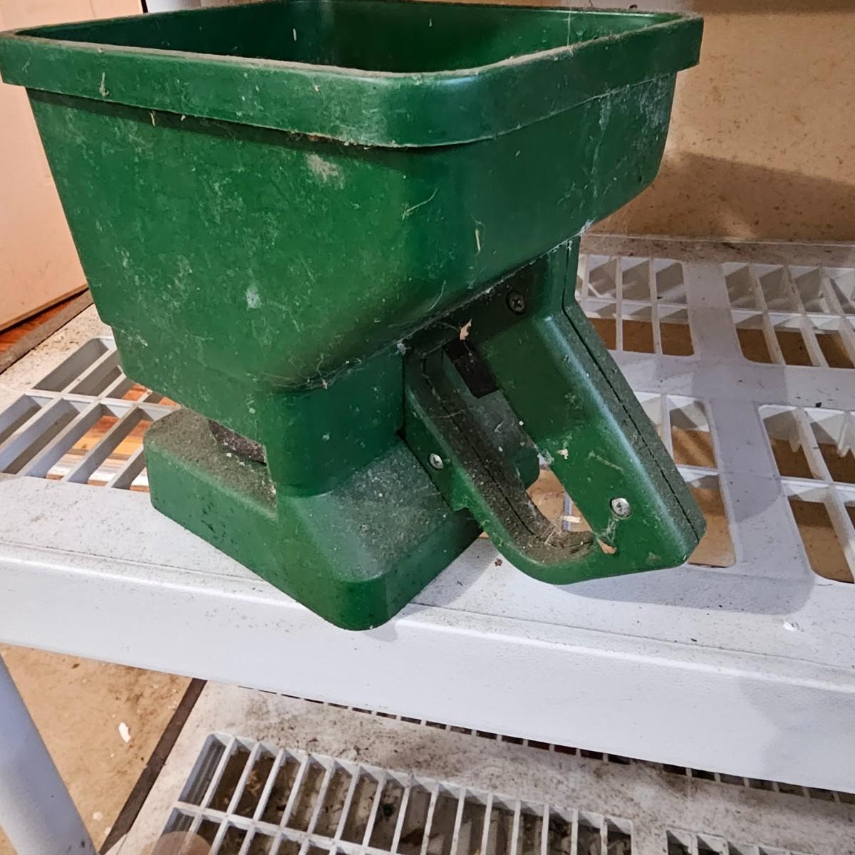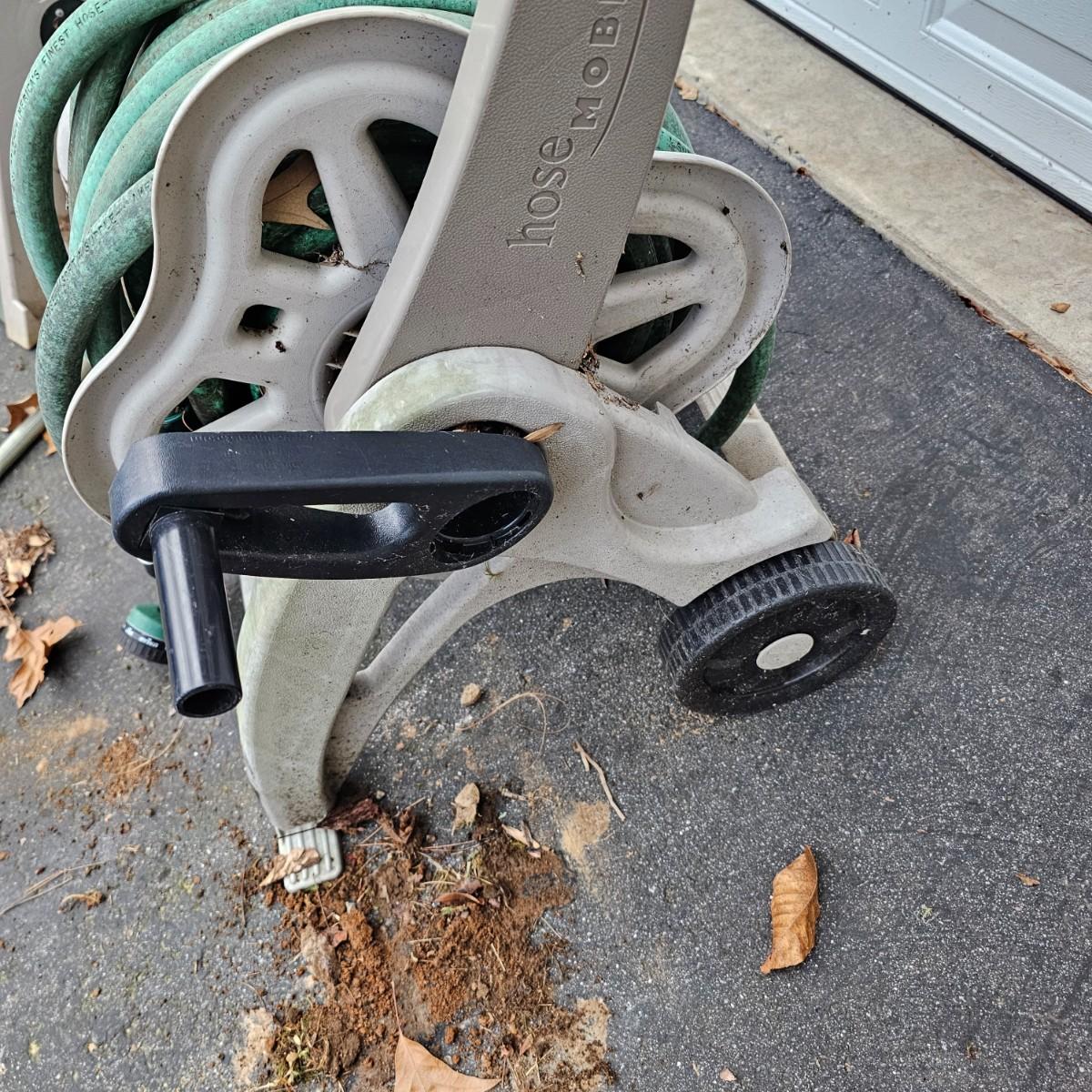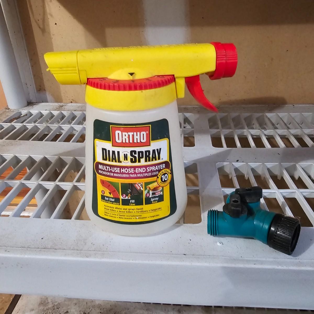 Two hose reel carts with hoses, some hand spreaders and more. Two Scotts hand spreaders, one 4 gal Roundup pump sprayer, faucet covers and a partial used termite treatment set. Hose reels measure 22" x 24" x 31" for the large one and 18" x 18" x 20" for the small one. See photos for details. Local pickup only.