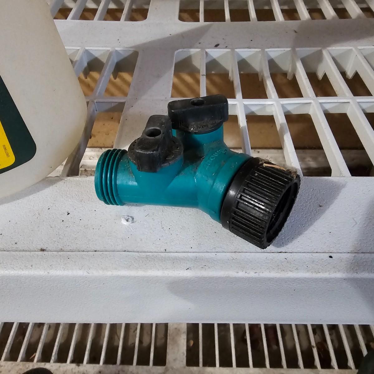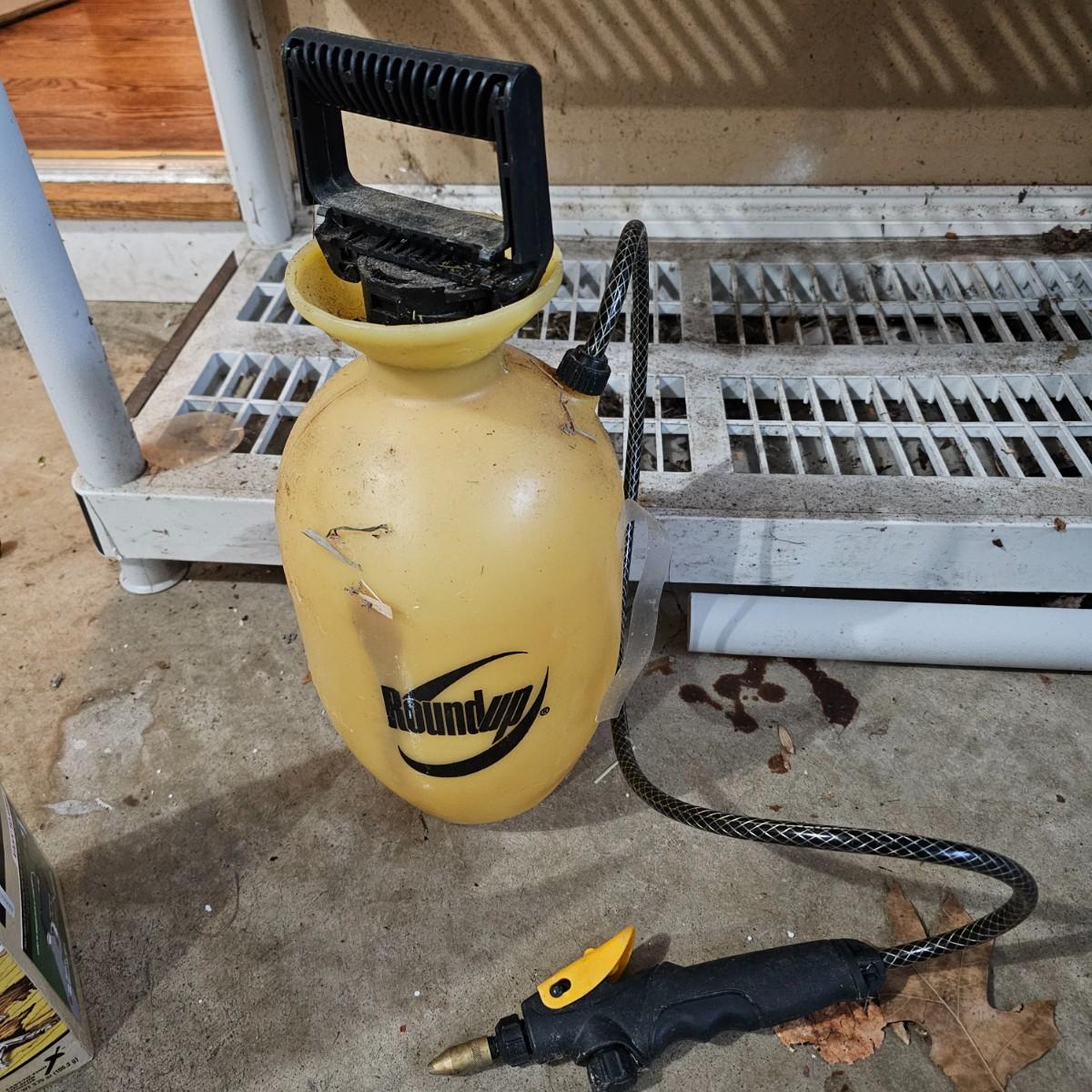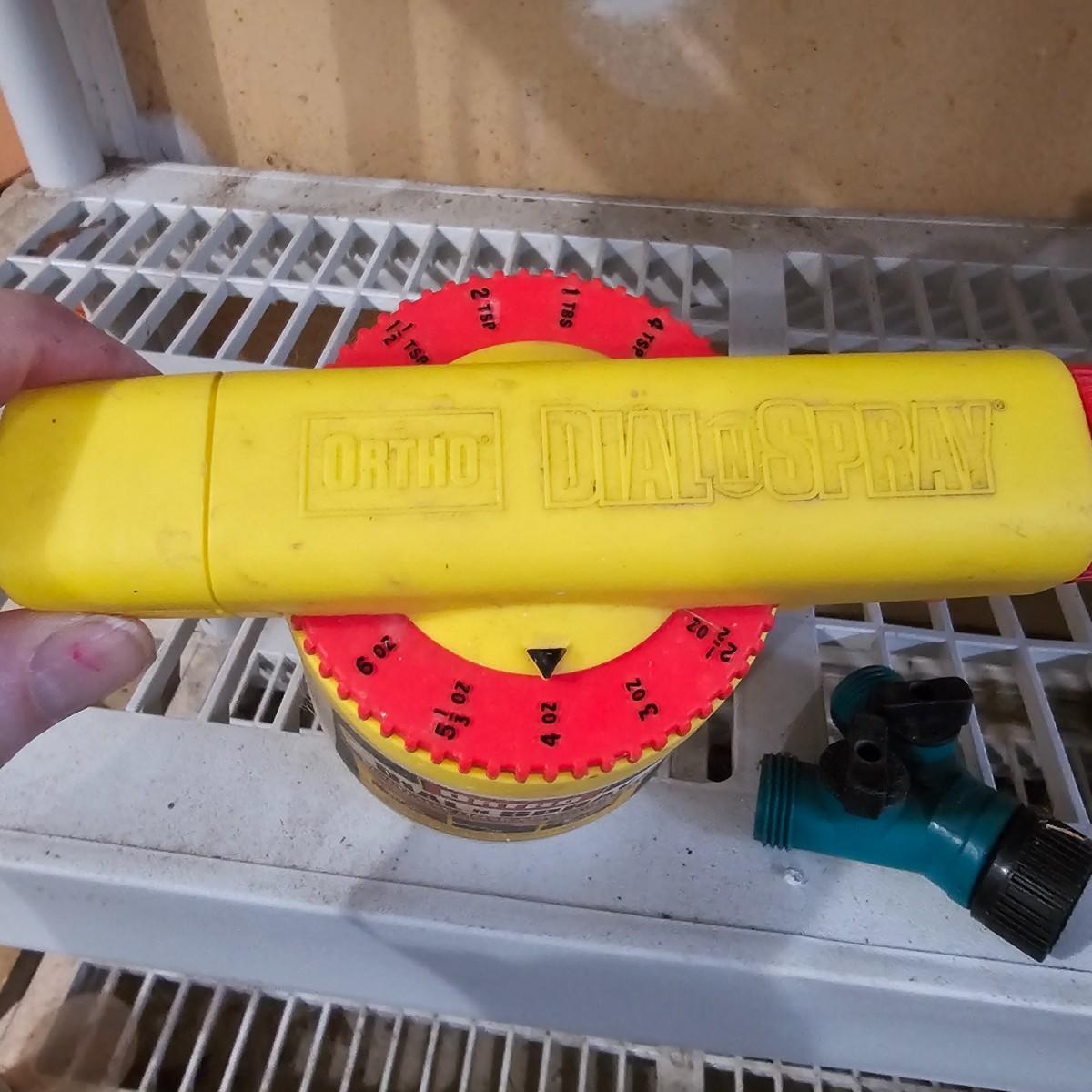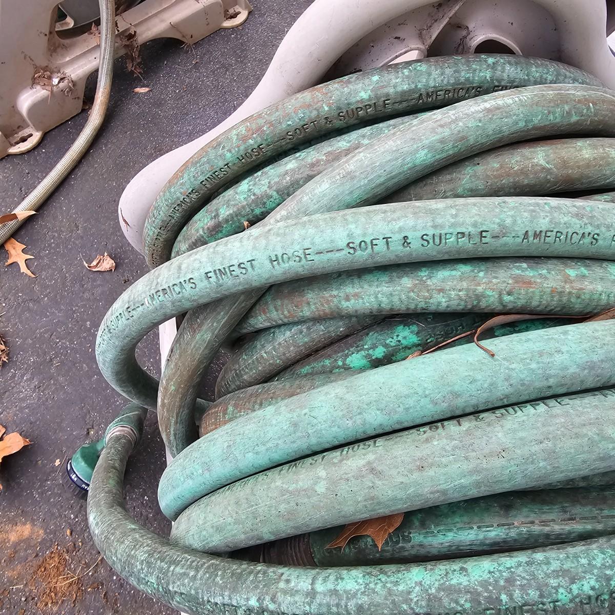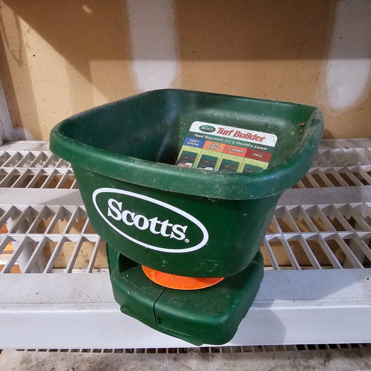 Two hose reel carts with hoses, some hand spreaders and more. Two Scotts hand spreaders, one 4 gal Roundup pump sprayer, faucet covers and a partial used termite treatment set. Hose reels measure 22" x 24" x 31" for the large one and 18" x 18" x 20" for the small one. See photos for details. Local pickup only.
