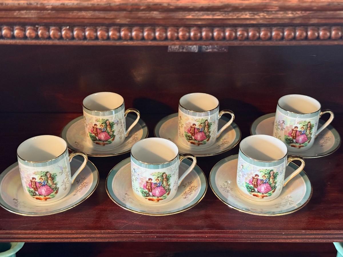 Yau Shing Laurel Shield Fine Porcelain China- set of 6 cups and saucers