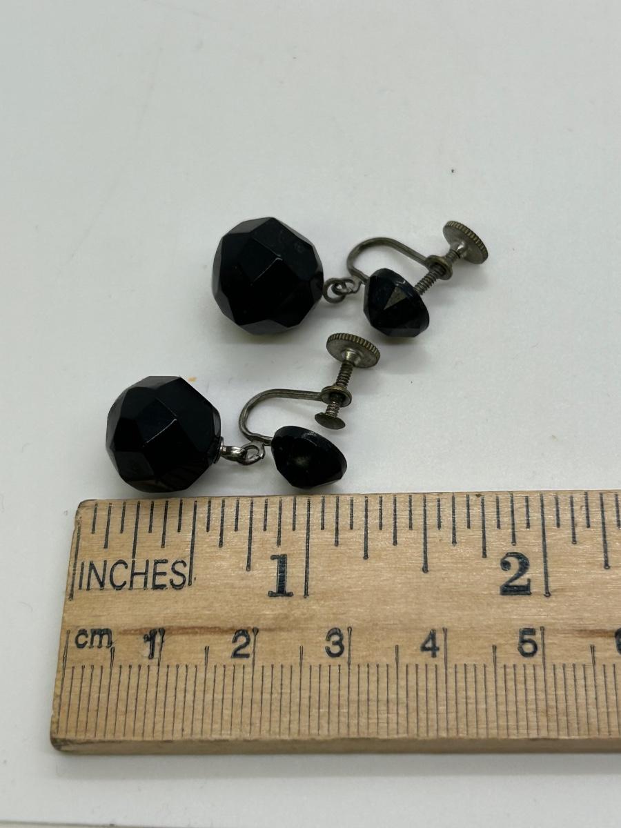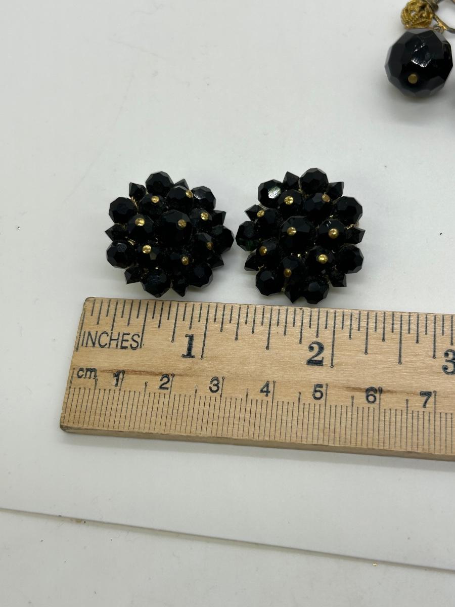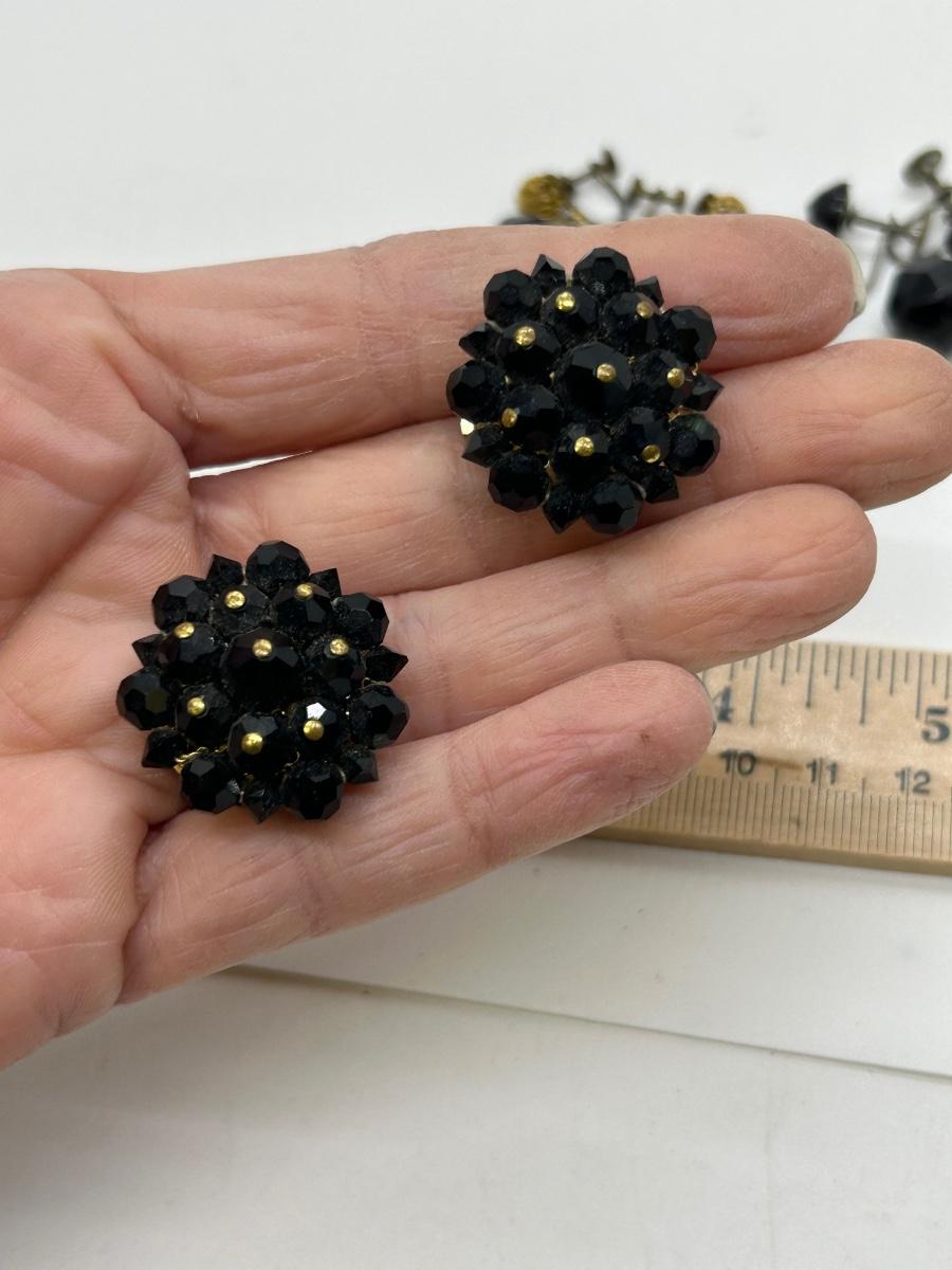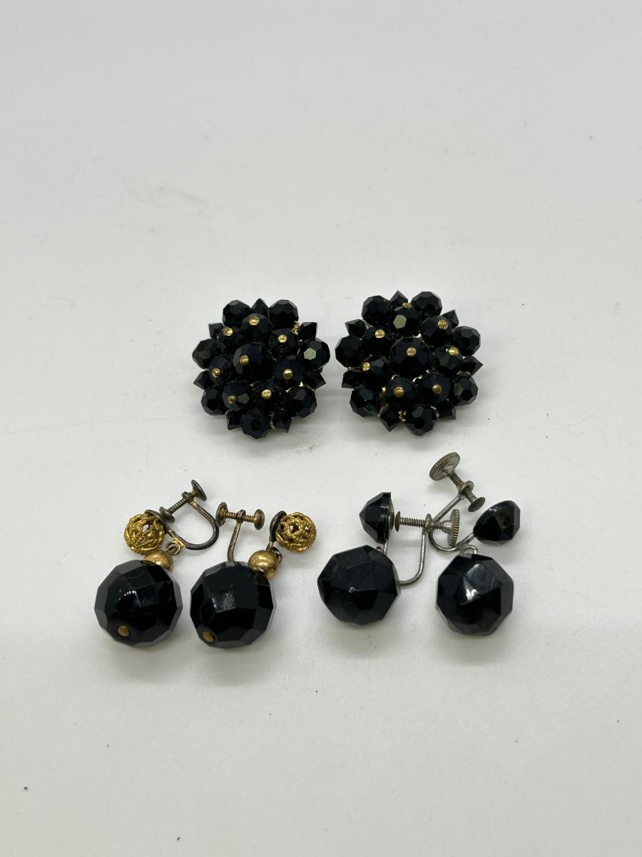 Three Pairs of Black Rhinestone Faceted Bead Clip Style and Screw Back Earrings