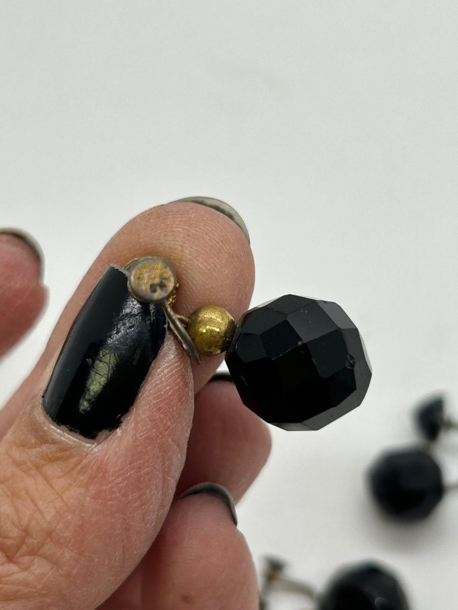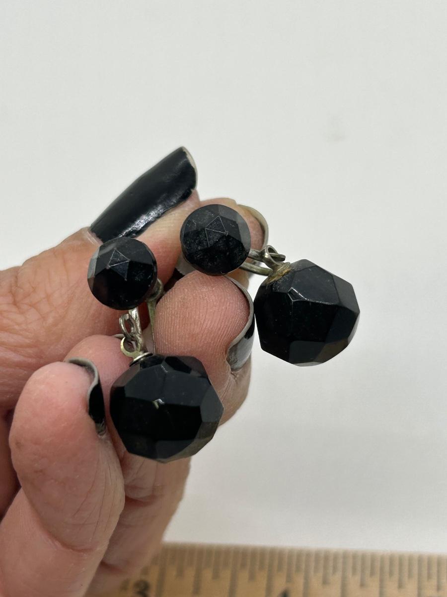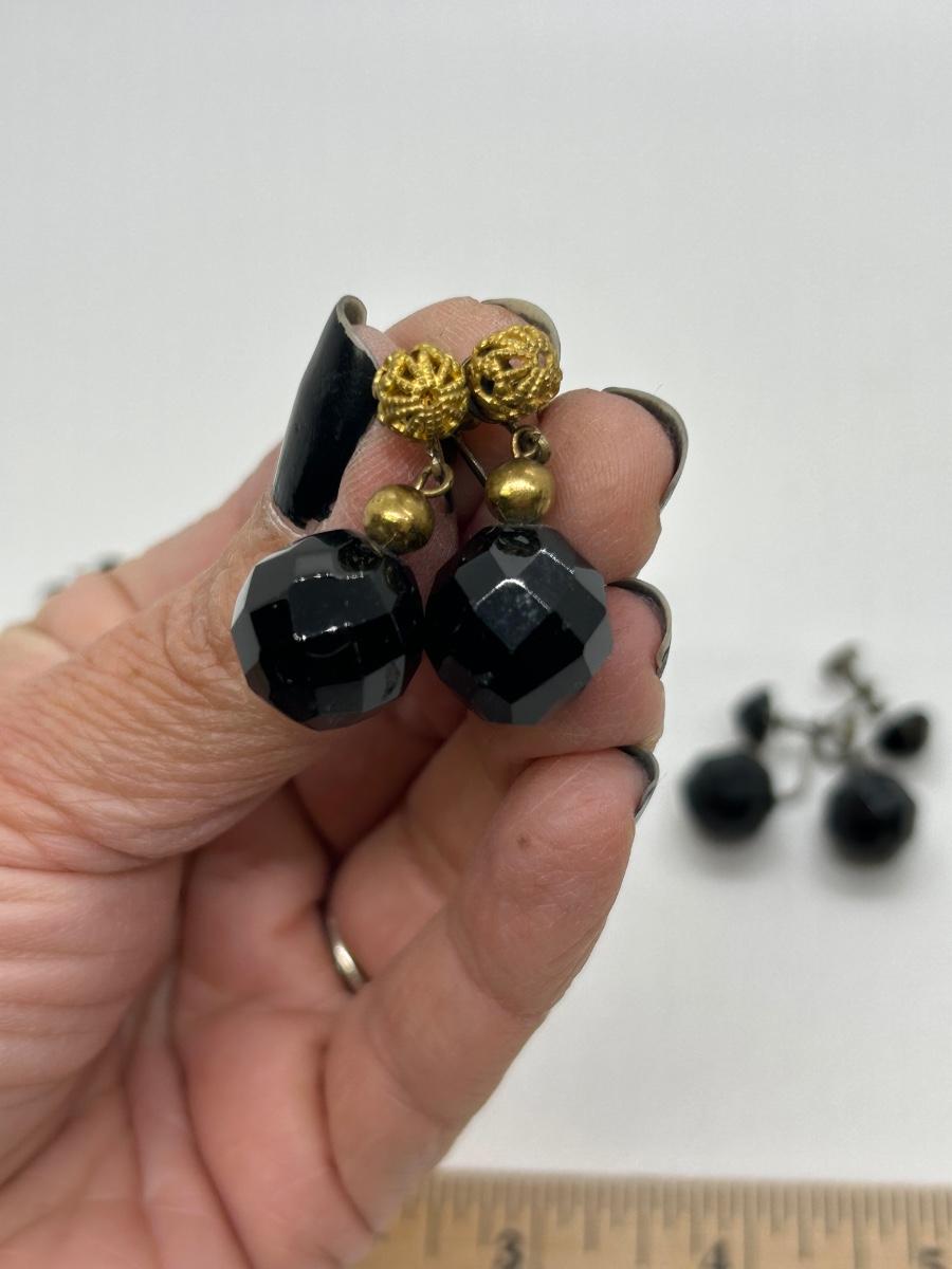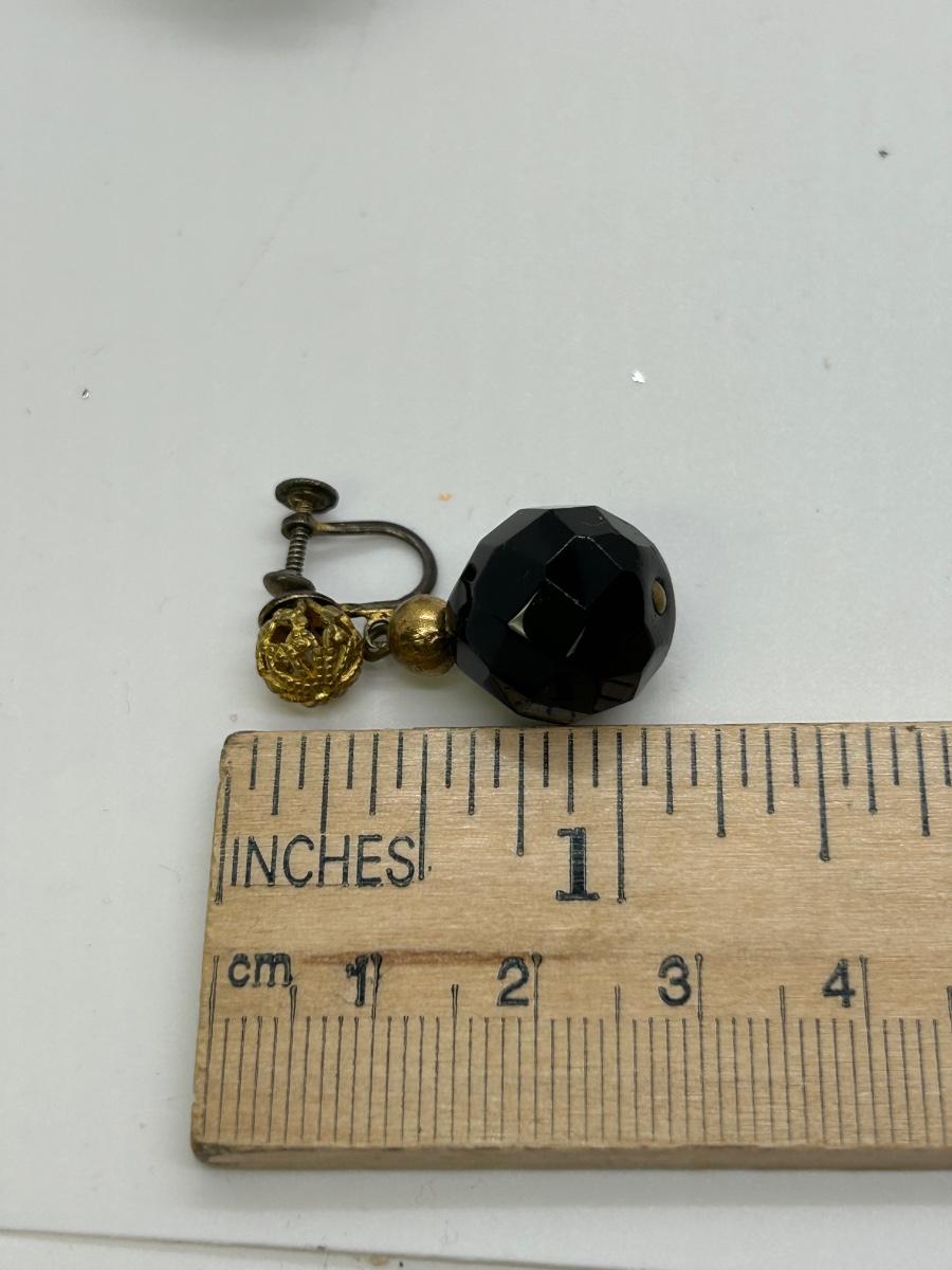 Three Pairs of Black Rhinestone Faceted Bead Clip Style and Screw Back Earrings