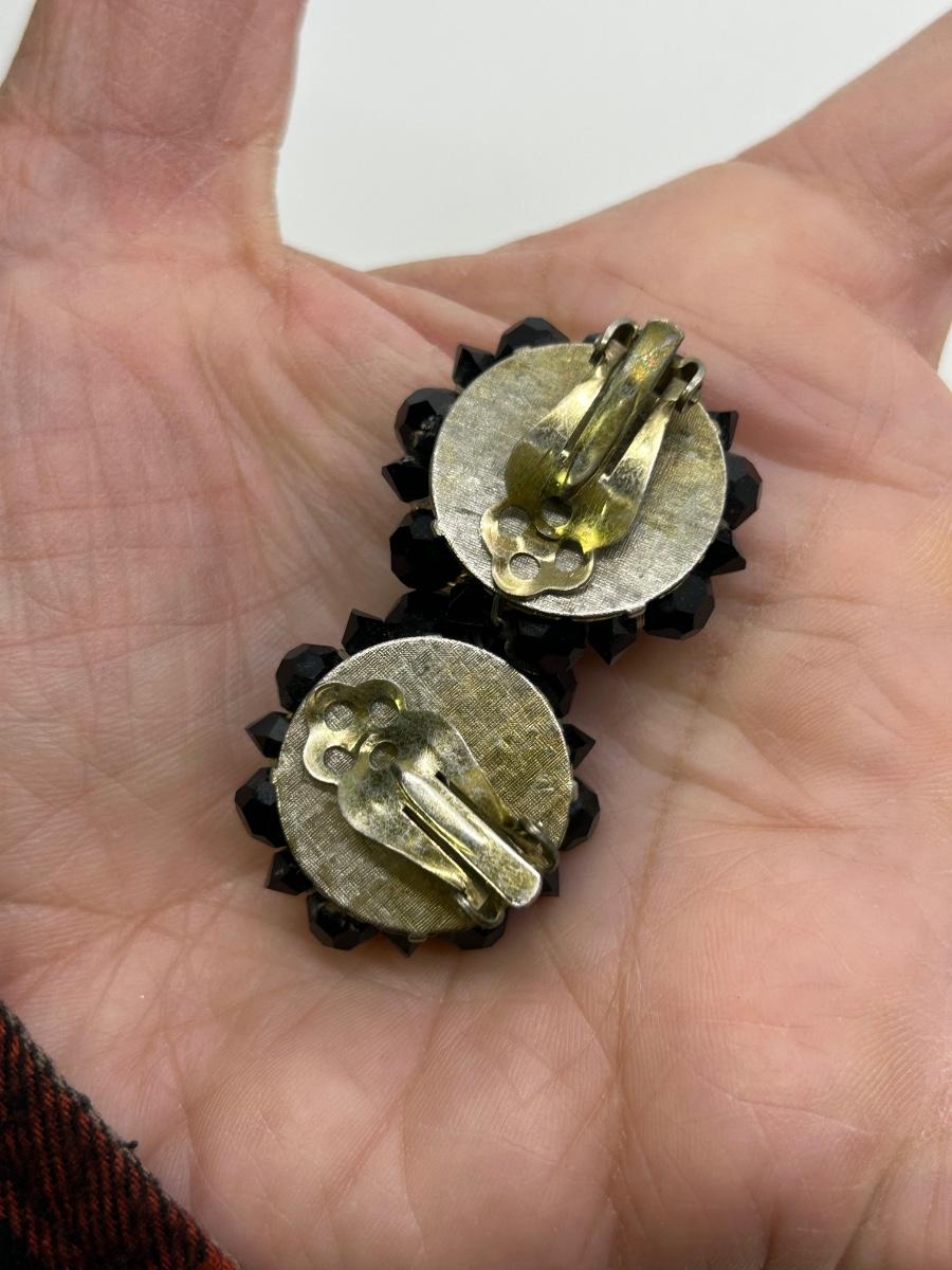 Three Pairs of Black Rhinestone Faceted Bead Clip Style and Screw Back Earrings. In good vintage condition.