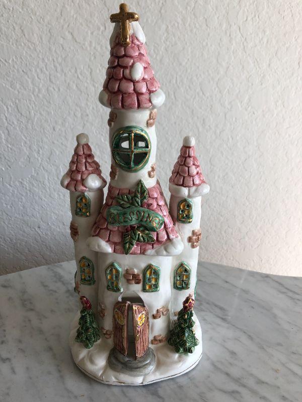 Ceramic winter church display. Can be lit up. 12" tall.