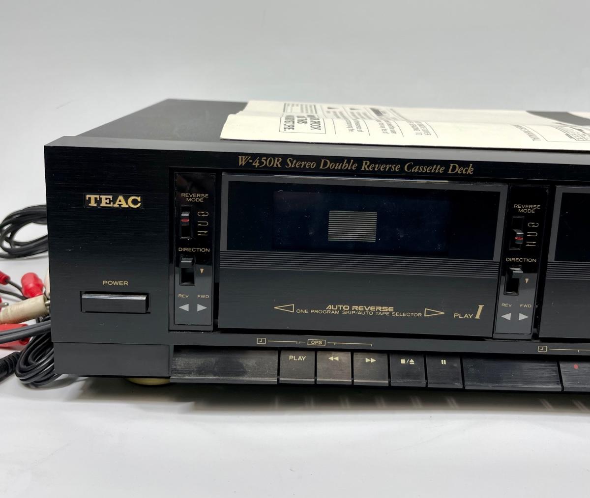 Teac W-450R Stereo Double Reverse Cassette Deck. Tested, powers up, each tape deck runs when play button is pressed.