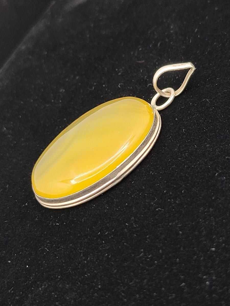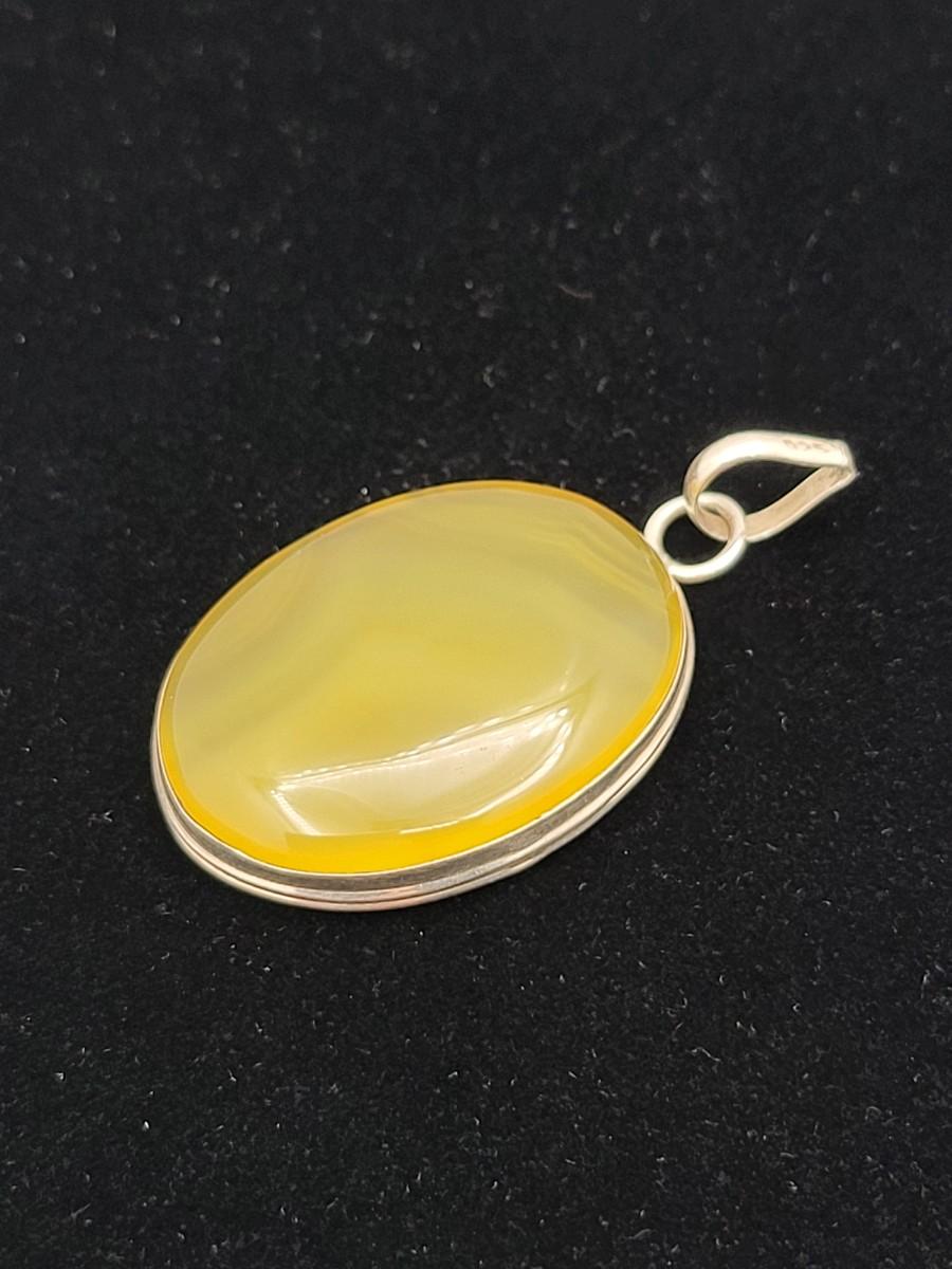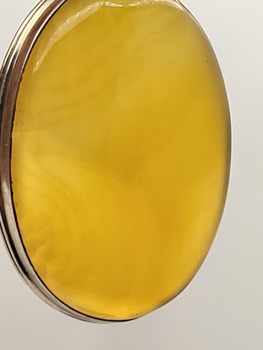 Large 1.5" x 1.25" yellow agate pendant, bale and setting 925 silver. Weighs 16 grams.