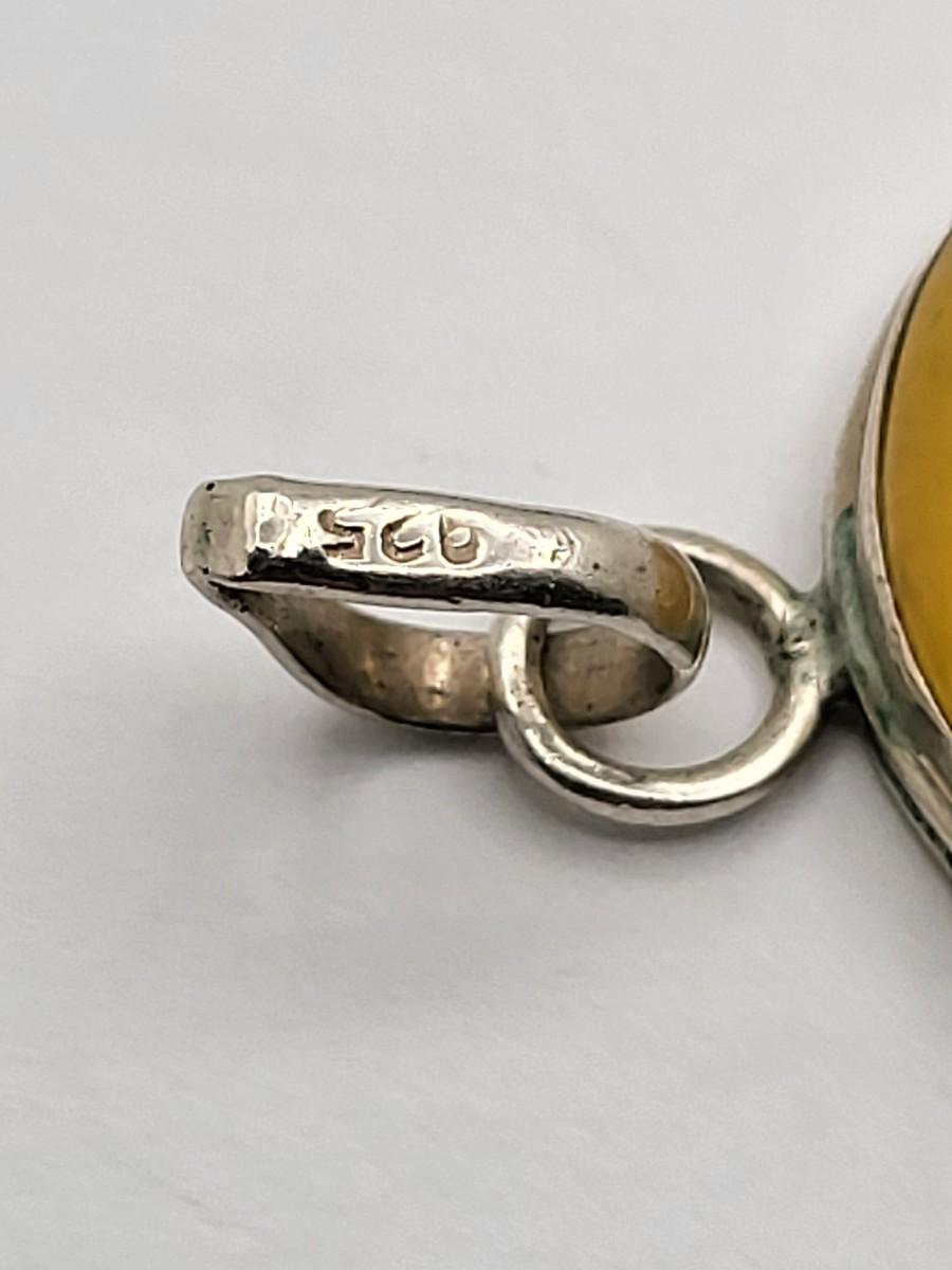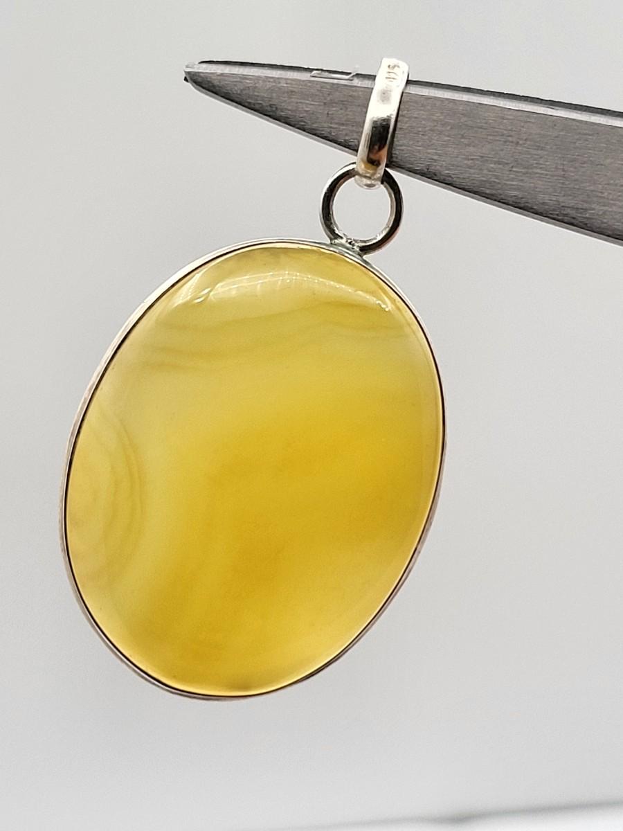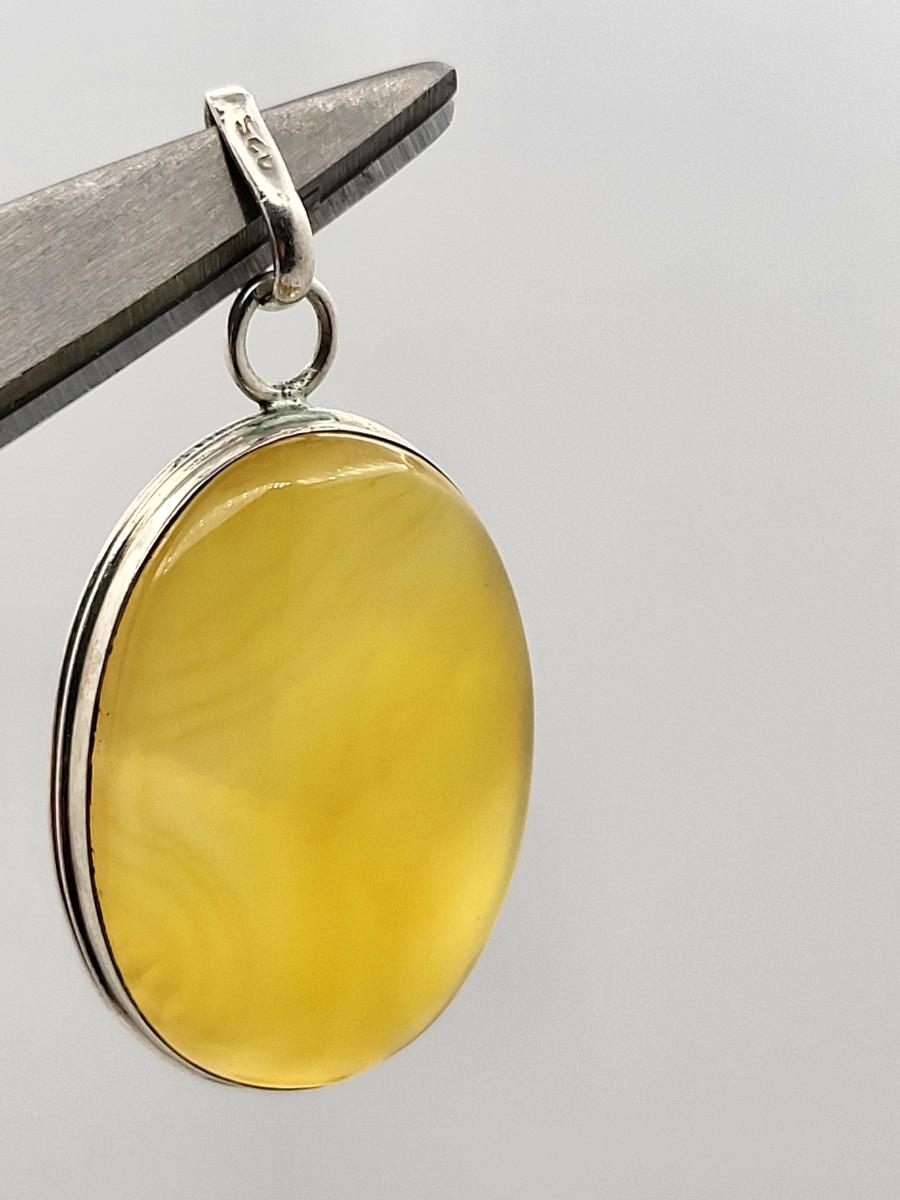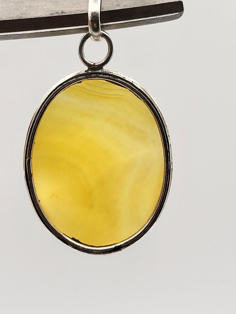 Large 1.5" x 1.25" yellow agate pendant, bale and setting 925 silver. Weighs 16 grams.