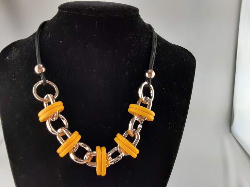 Yellow and Goldtone Circles Necklace