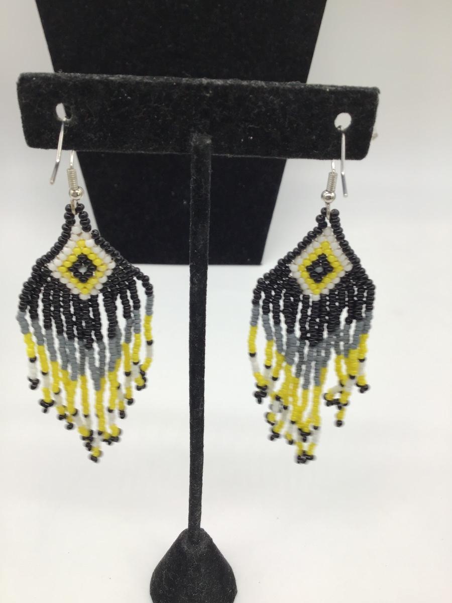 Yellow beaded dangle earrings