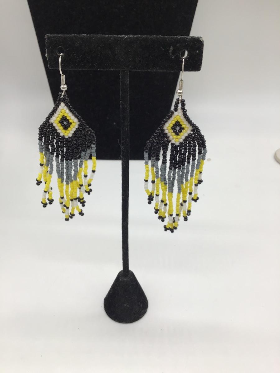 Yellow beaded dangle earrings