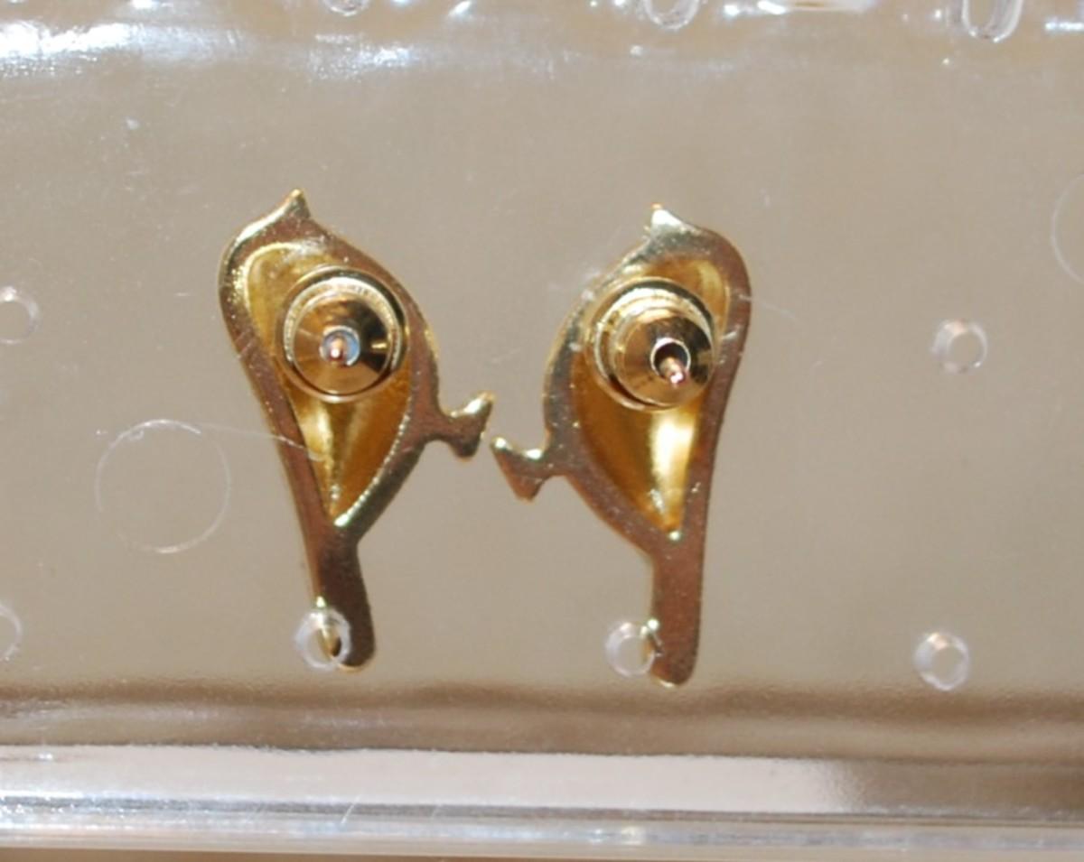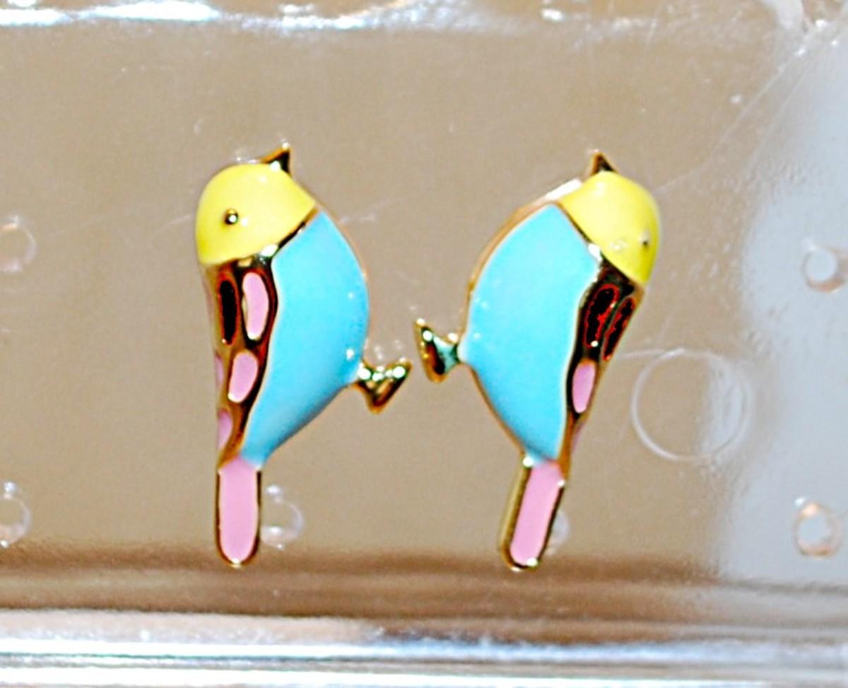 Yellow, Blue & Pink BIRDS Earrings (¾" x ½") on a Gold Tone Stud Clasp