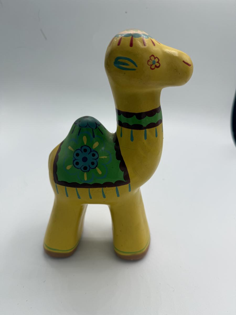 Yellow camel Vtg Russian paper mache
