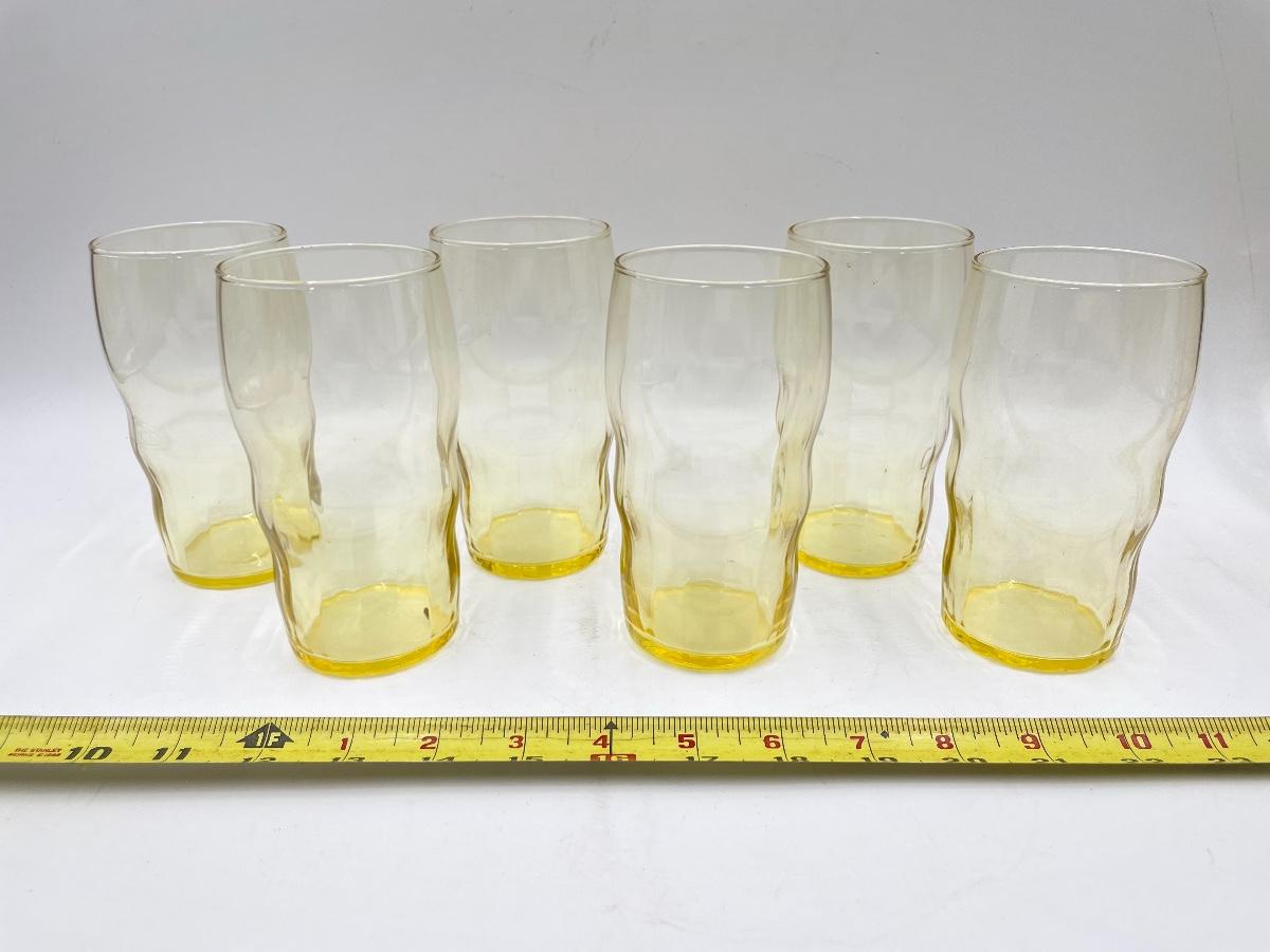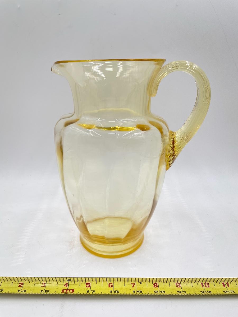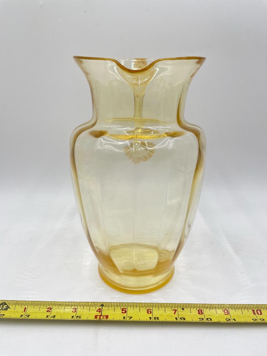 YELLOW DEPRESSION GLASS PITCHER AND 6 CUPS