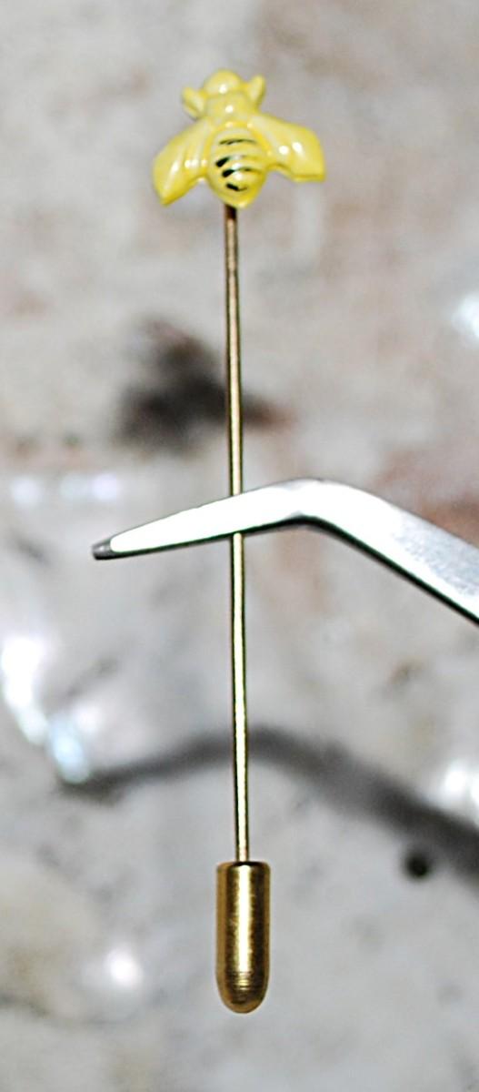 YELLOW Enamel BEE PIN (2¾" L) with Pin Guard on a Gold Tone Setting