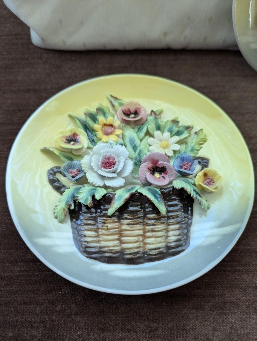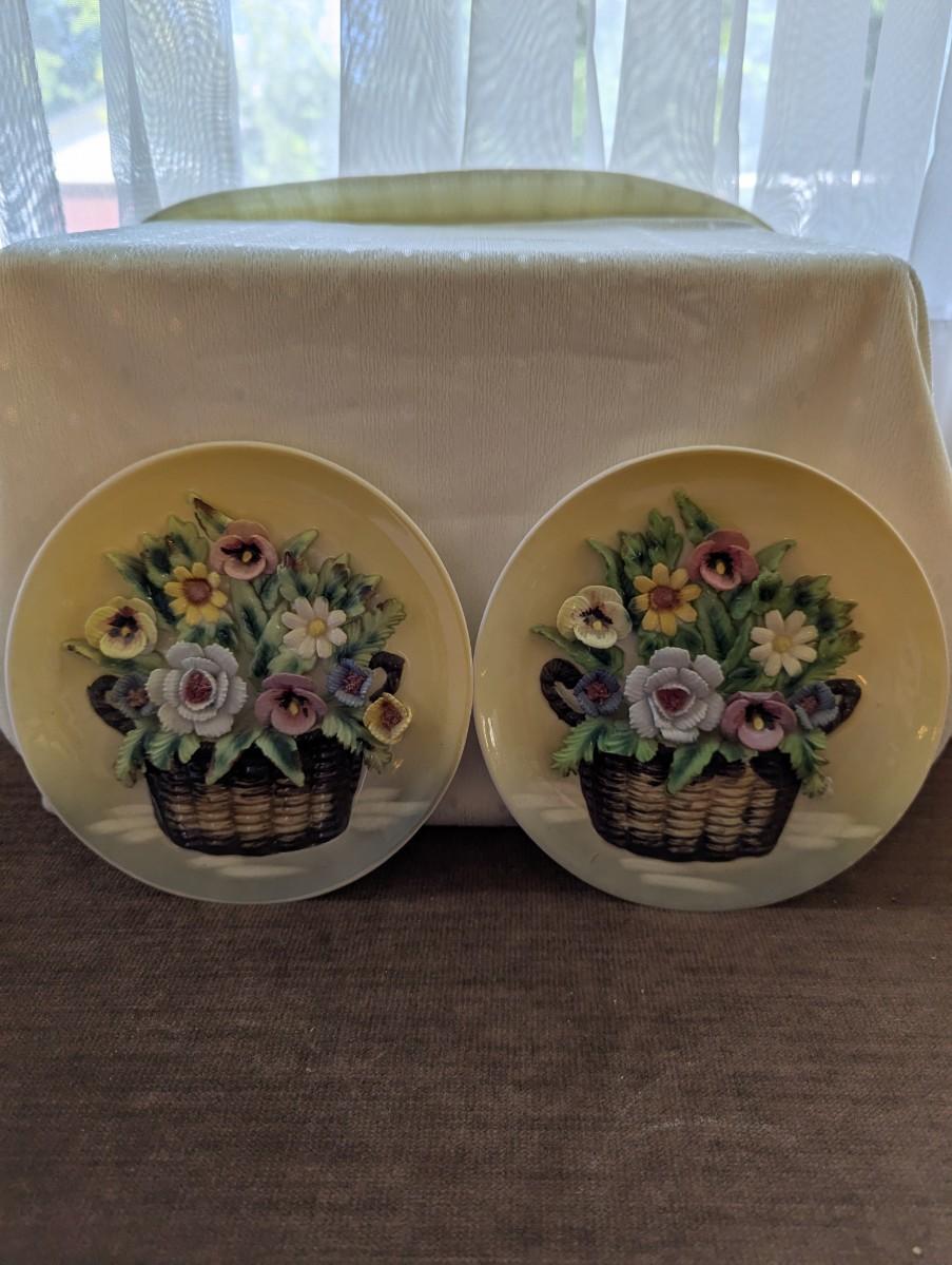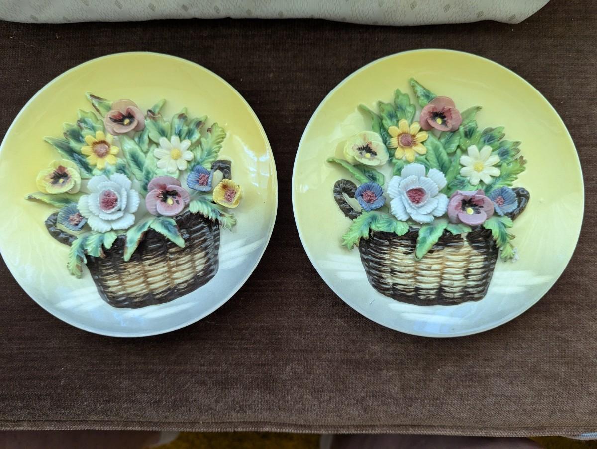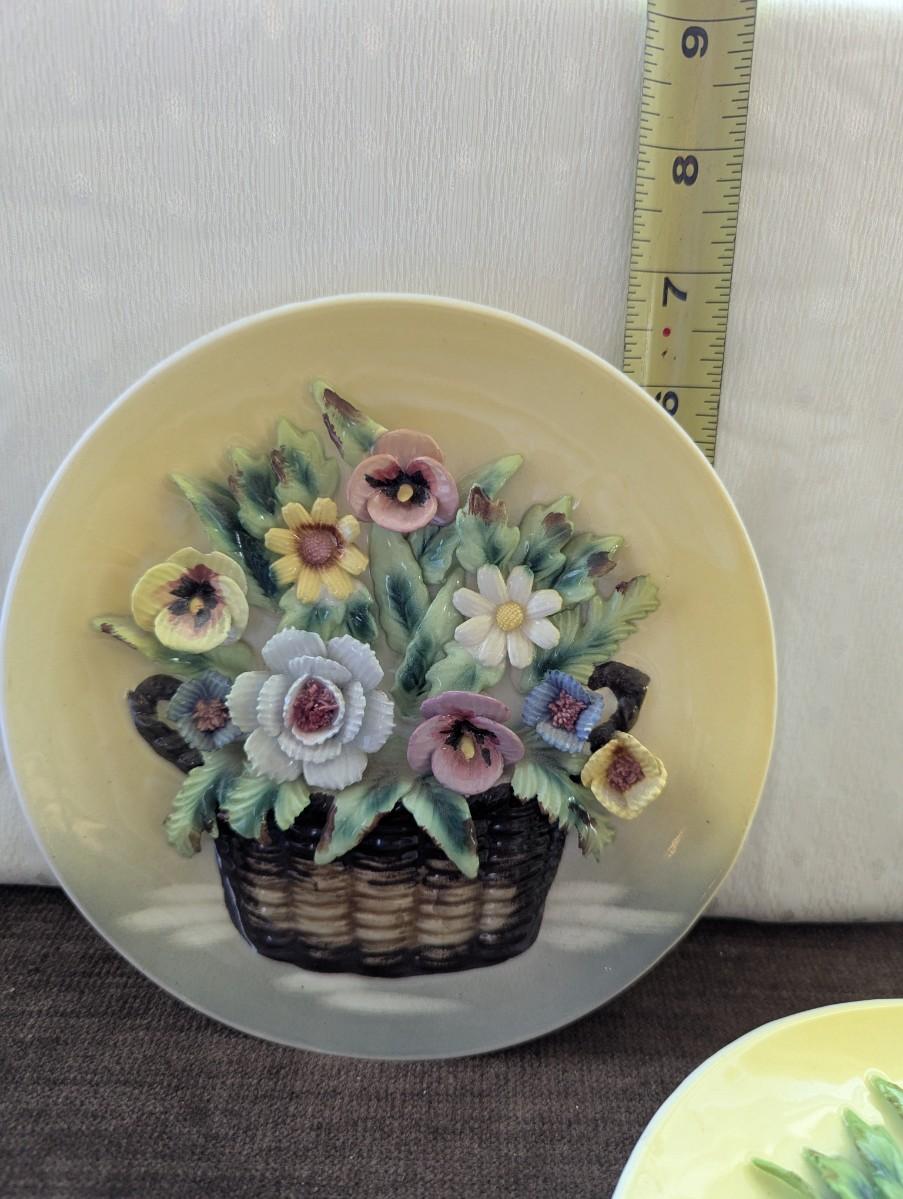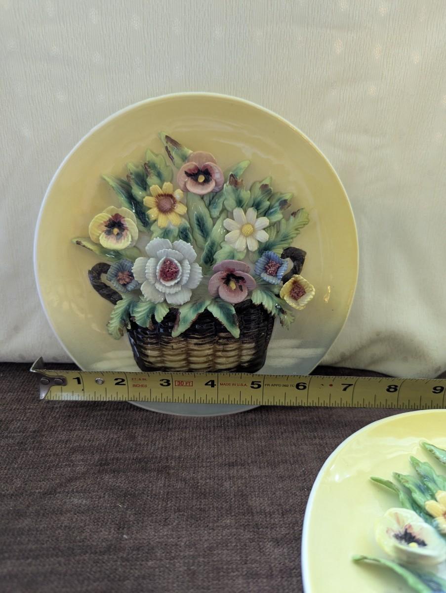 Two lovely yellow Japan Plates with Bouquet of 3D Pansies. In mint condition.