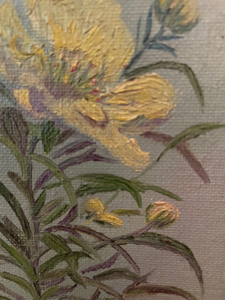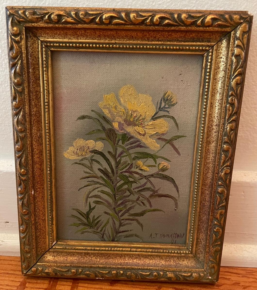 "Yellow Flowers" Acrylic on canvas by Allie S Thomasson (signed A Thomasson '01)