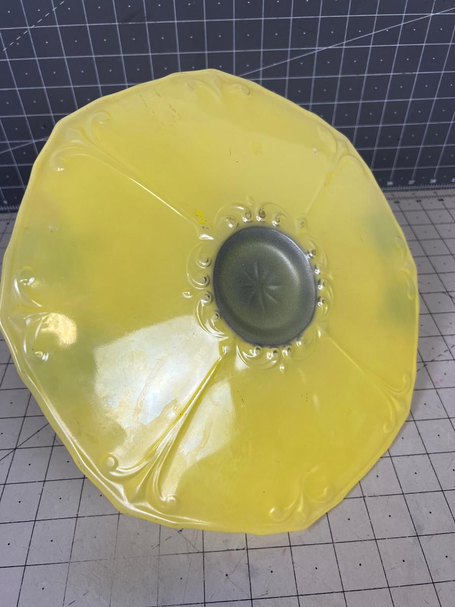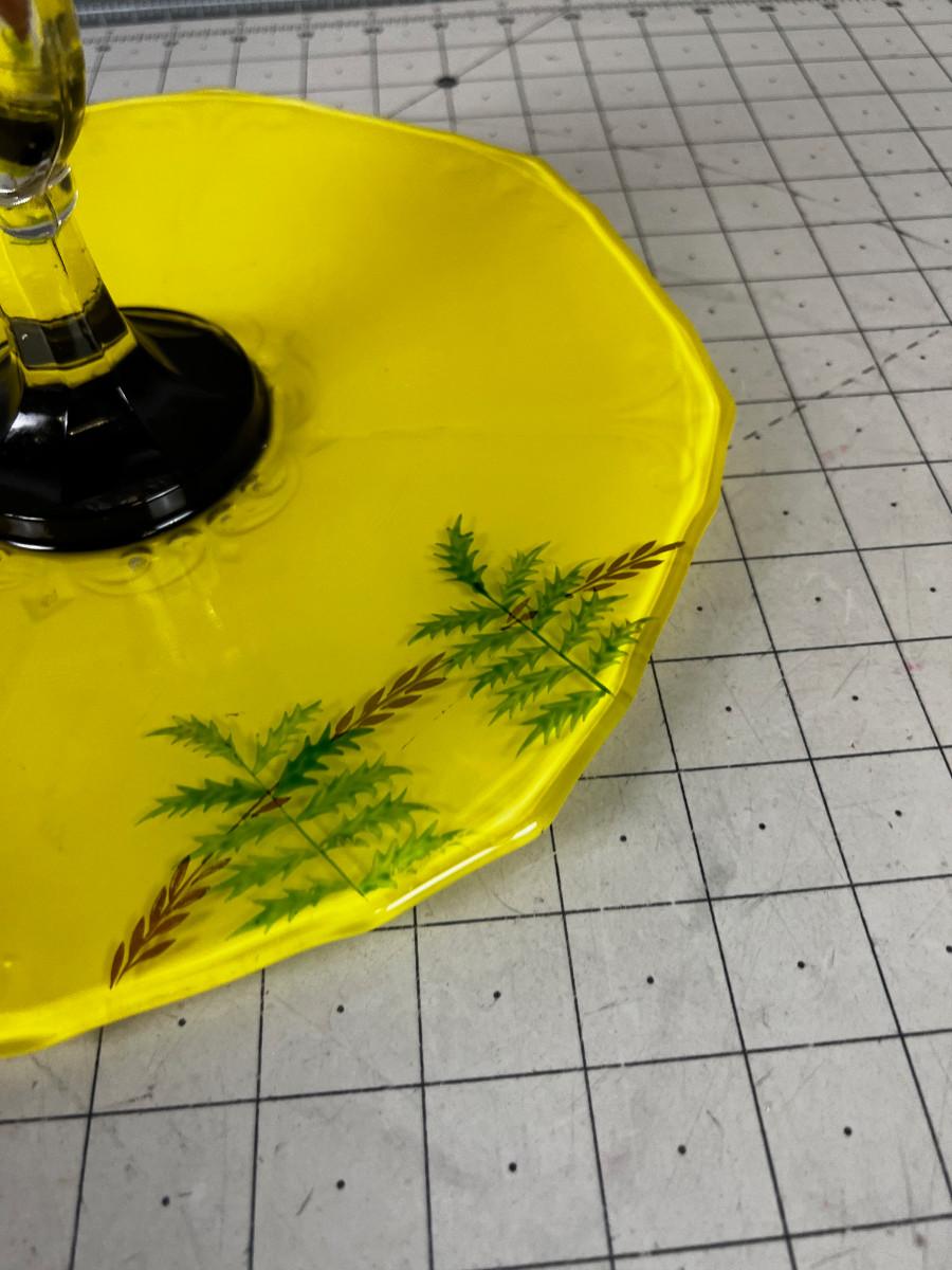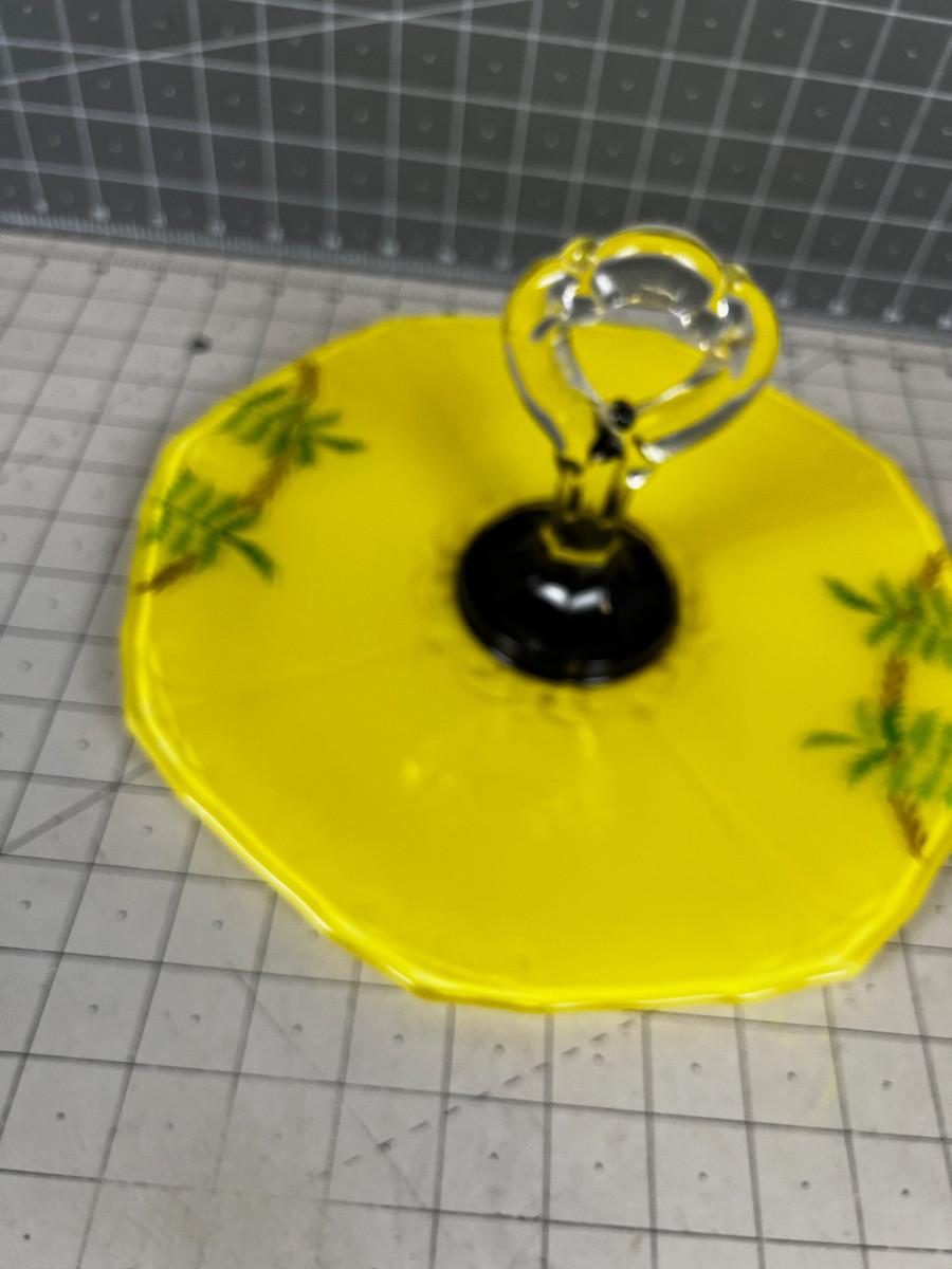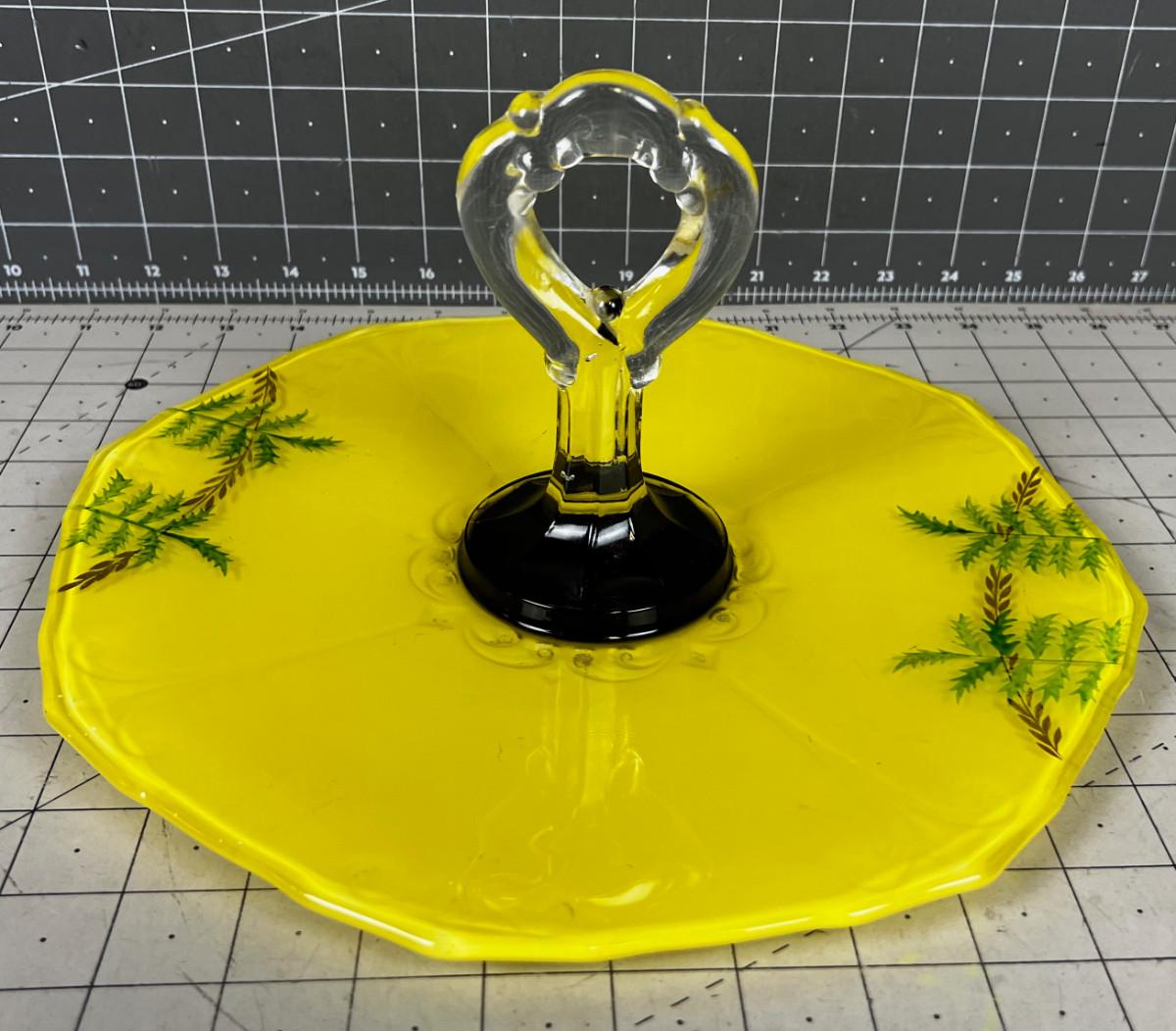 Yellow Glass Serving Tray with Handle and Hand Decorated.