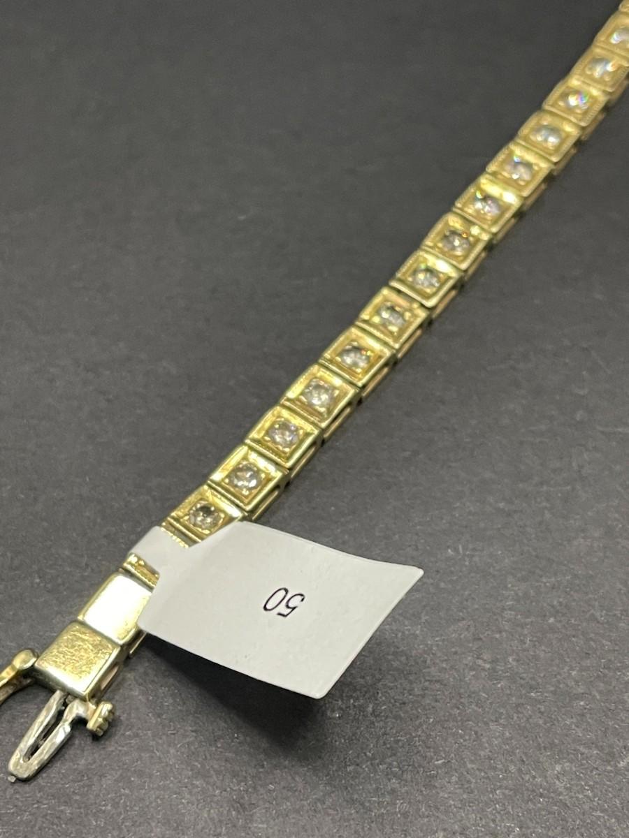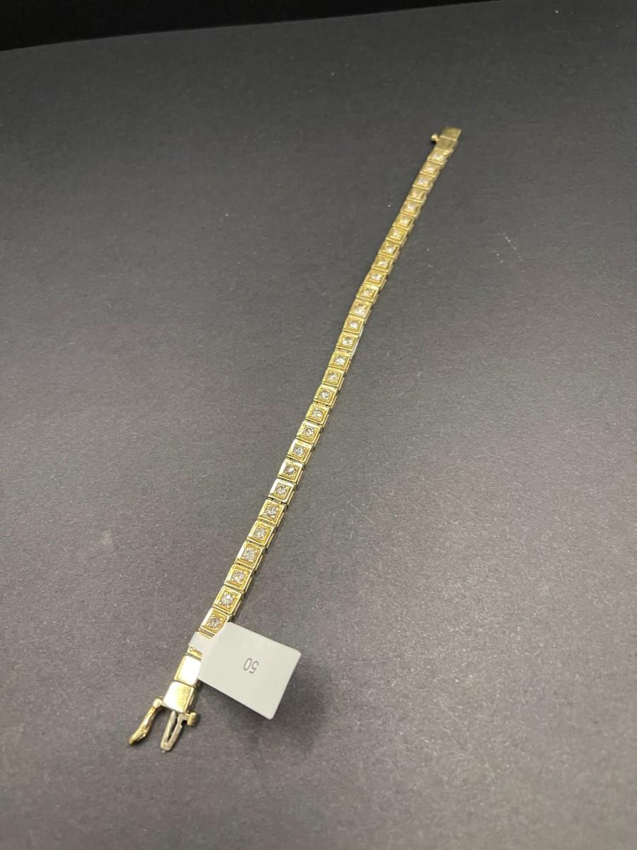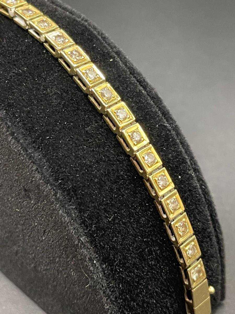 14K yellow gold tennis bracelet with round diamonds set in square settings. 2.32 cttw O-P I. 7 1/4" long. Shows some wear.