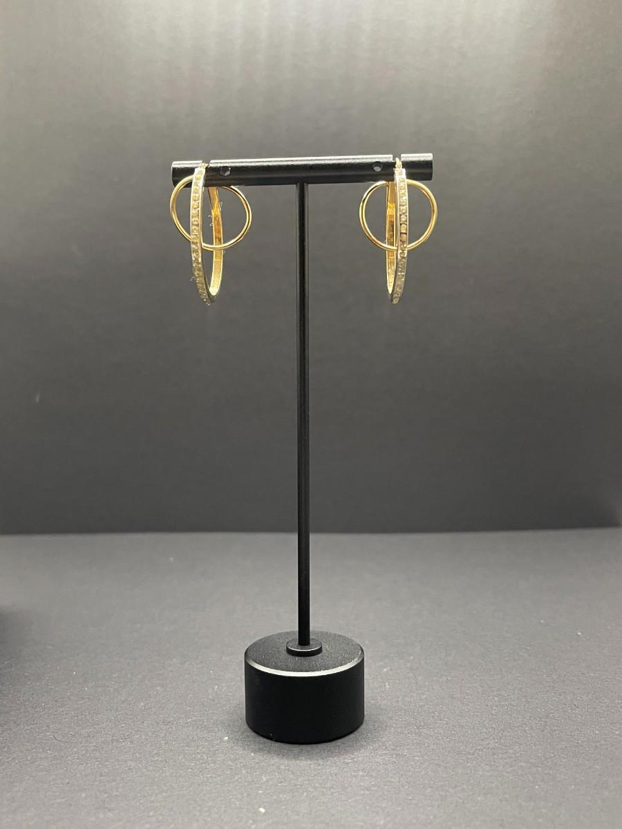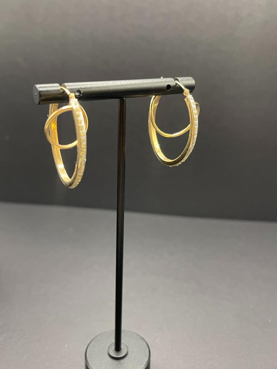 Yellow Gold & Fake Diamond Hoop Earrings