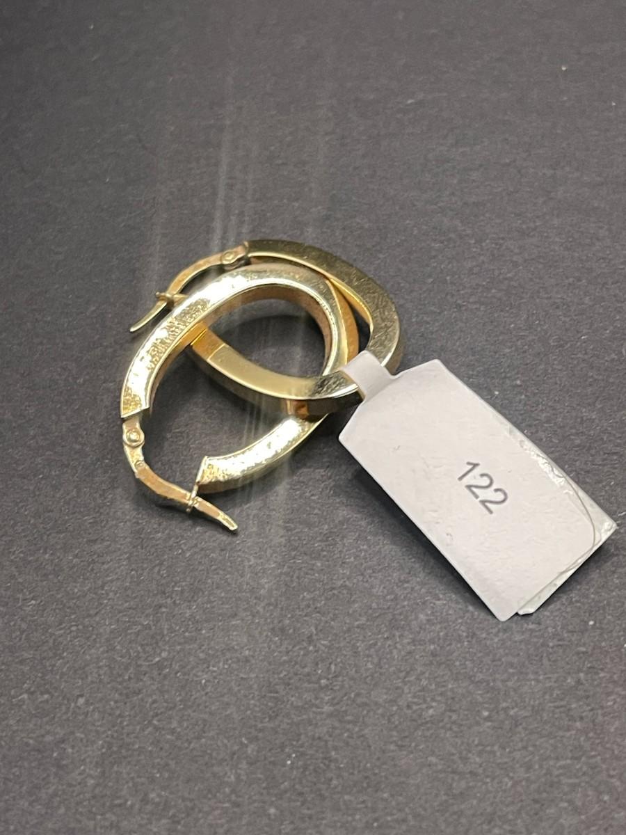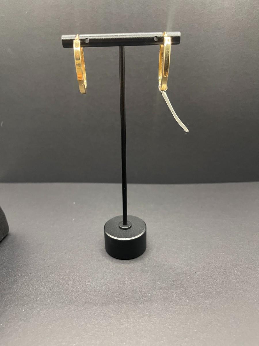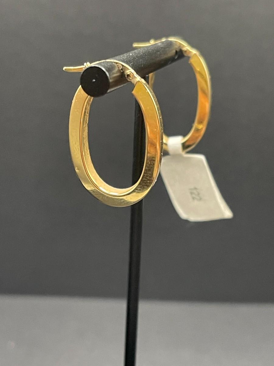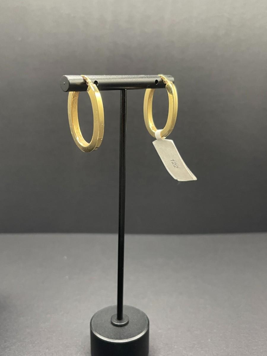 Yellow gold, oval, square tube hoop earrings. 2.01 grams.