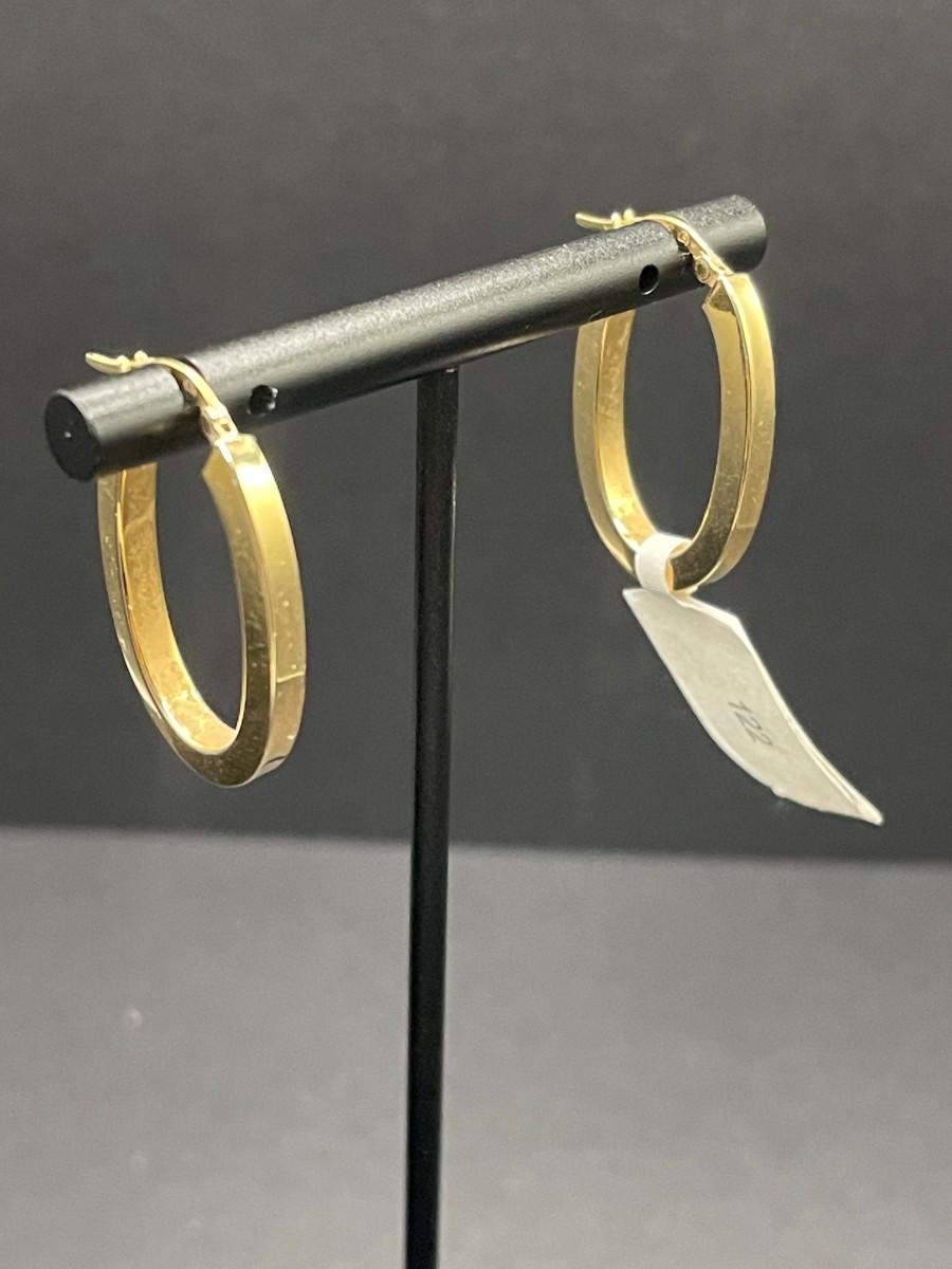 Yellow Gold Oval Square Tube Hoop Earrings