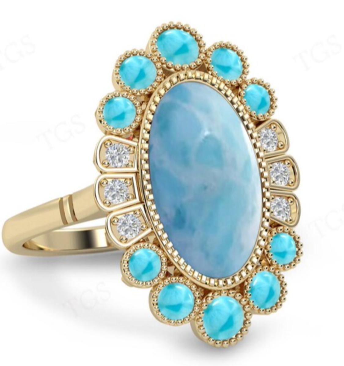 Yellow Gold over 925 Natural Larimar Statement Ring