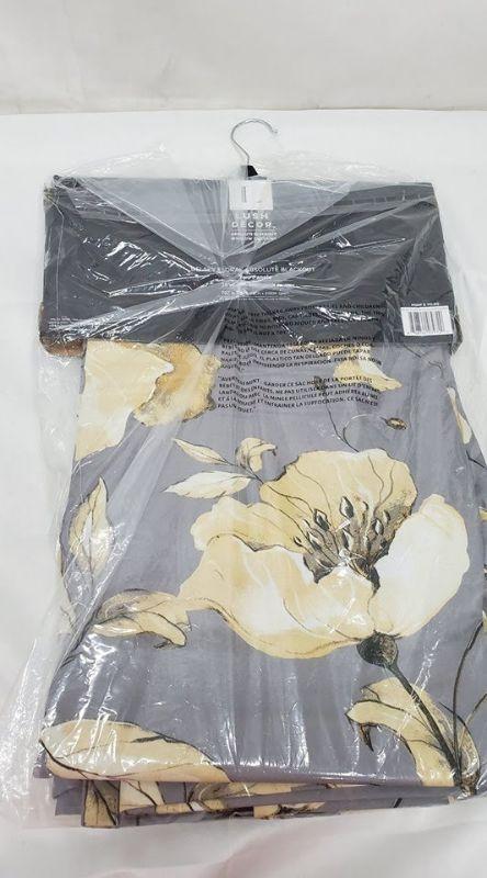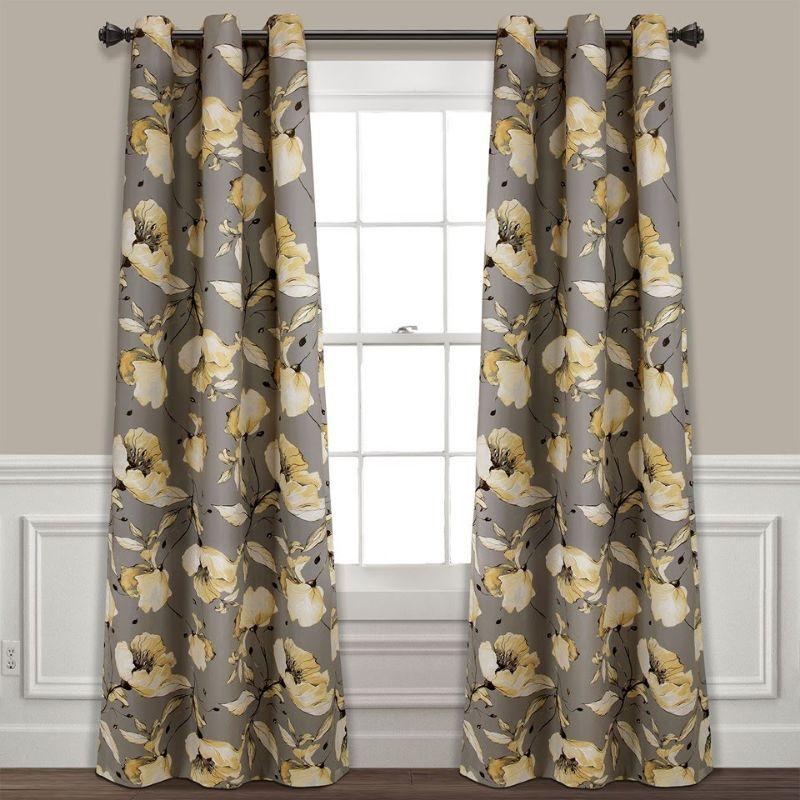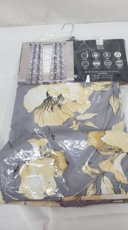 Yellow & Grey, Pair of Delsey Floral Absolute Blackout Window Panels, 76X84 Set, (Each 38X84) - New