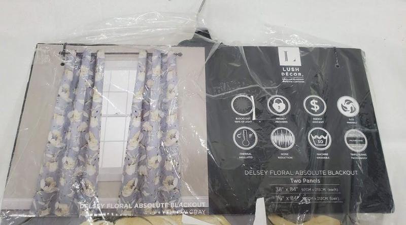Yellow & Grey, Delsey Floral Absolute Blackout Window Panels, 76X84 Set - New