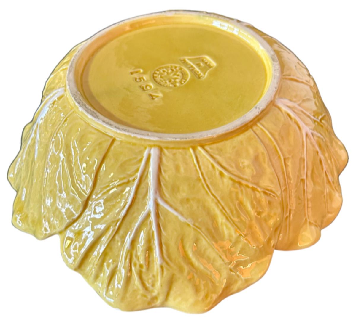 Yellow handpainted Cabbage Bowl made in Portugal durbale earthenware