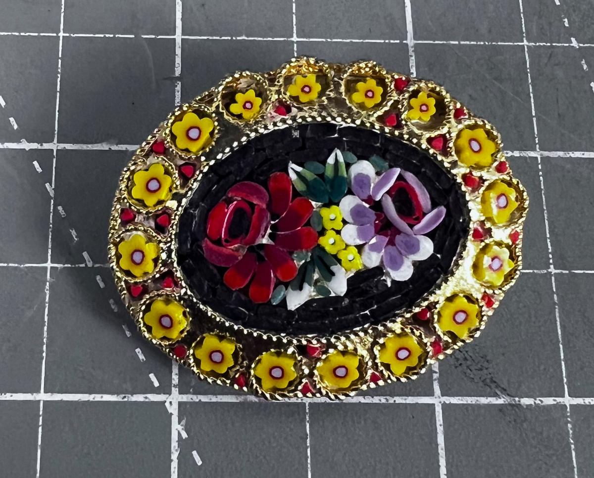 Yellow ish -Vintage Italian Glass Micro Mosaic Brooch