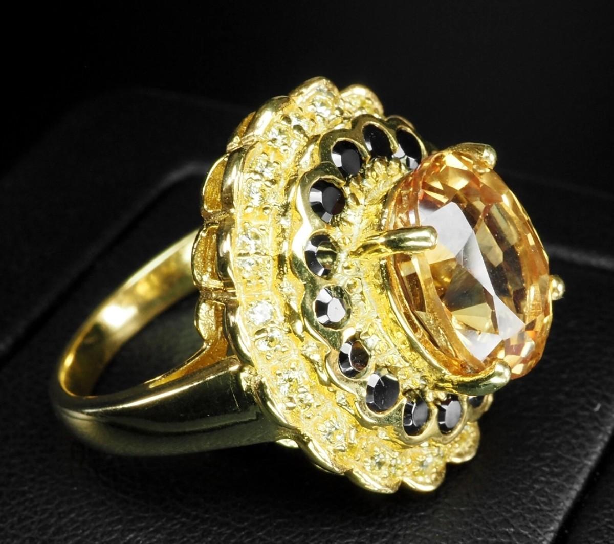 Glamorous Vivid Yellow Lab Grown Sapphire 6.45Ct 925 Sterling Silver 24K Gold Plated Ring